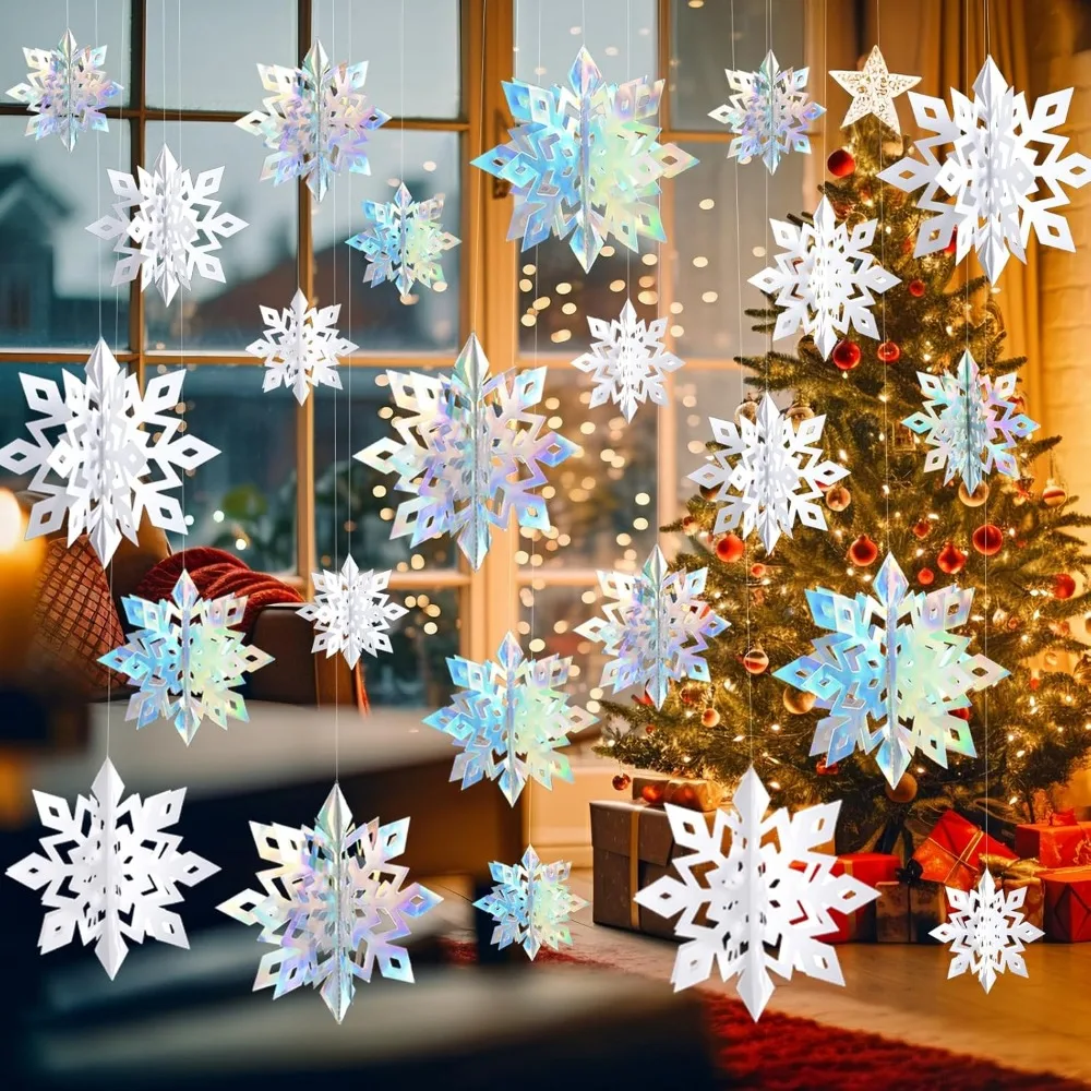 - Suitable Sizes: This Christmas garland set includes both white and laser designs in three sizes (9.8", 7.8", and 5.9"), allowing you to create a layered, dimensional look. Whether hanging from ceilings, windows, Christmas trees, or used as a snowflake garland, they will enhance your holiday display with a festive and eye-catching appeal