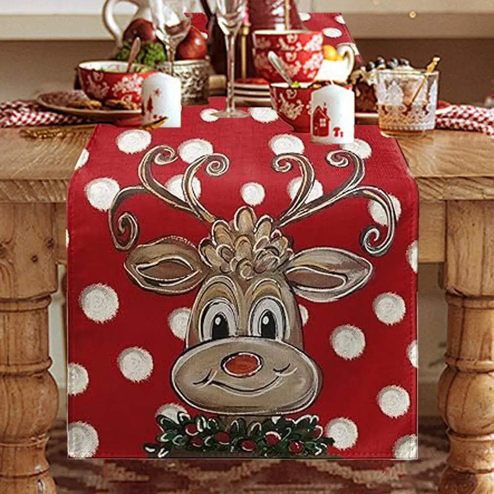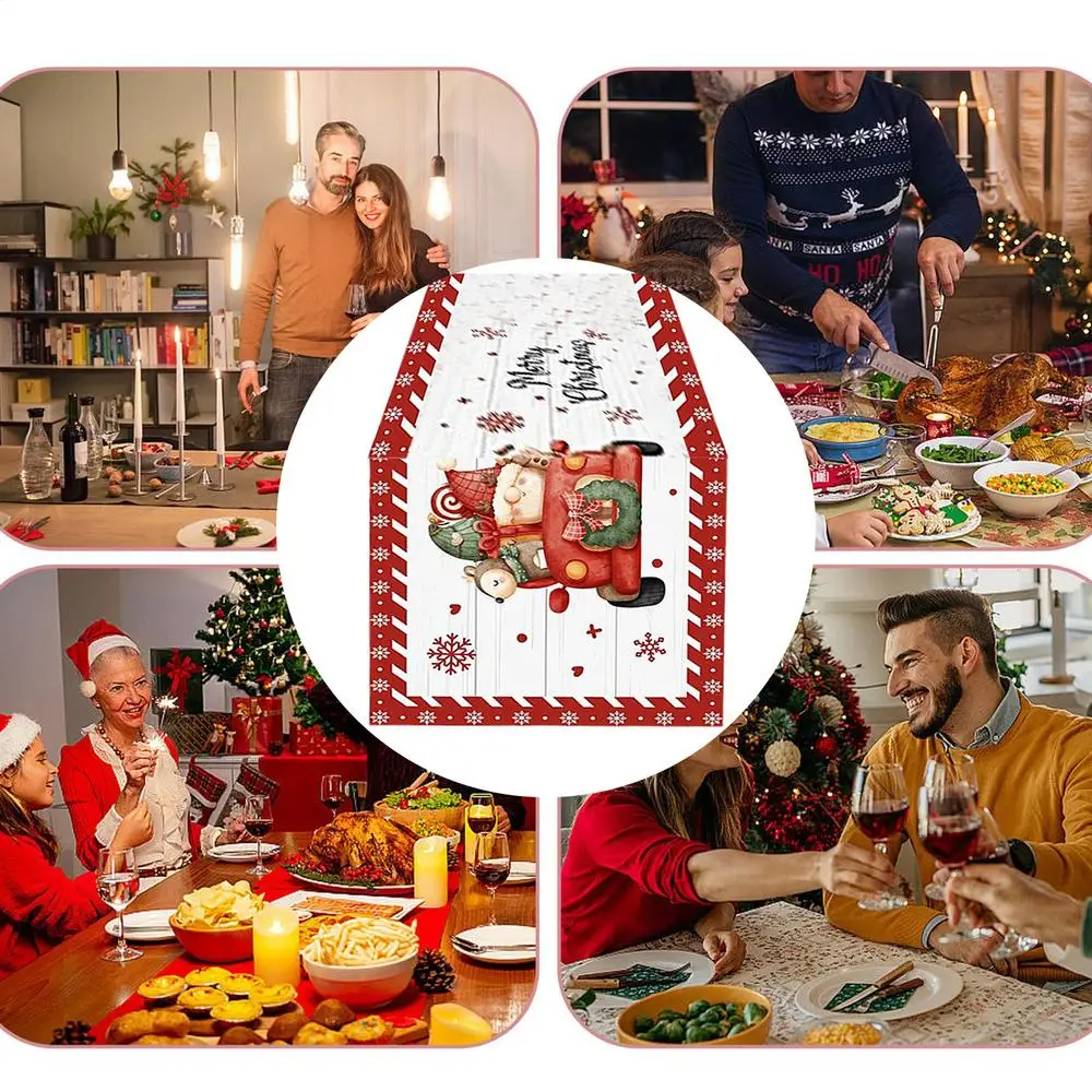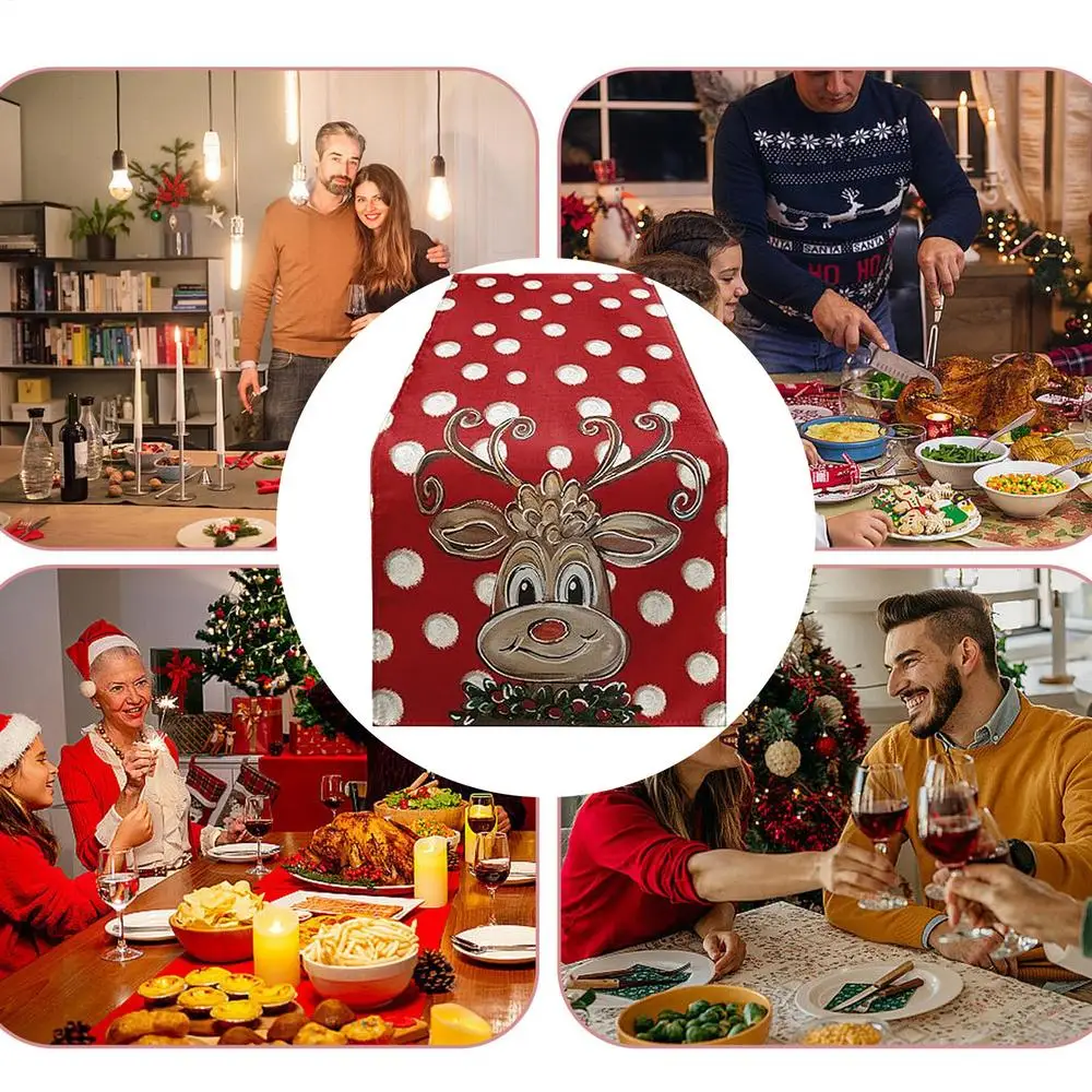 4.Joyful Dining Experience: Enhancing the ambiance of your dining space, this Christmas table runner adds a sprinkle of cheer to your festive celebrations, making the experience more enjoyable for everyone