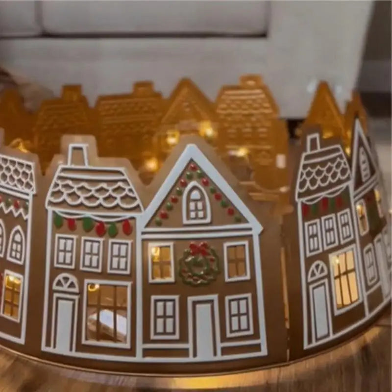 2.Add Beauty : A side of the curved panel is engraved with a white snowflake pattern, and the wire edge design on the top and bottom enhances the shape of the Christmas house, adding beauty to the Christmas tree ring