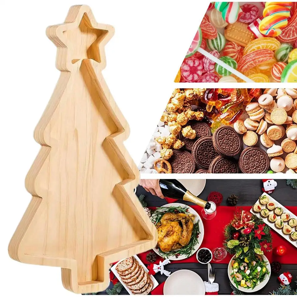 Add a festive touch to your holiday table with our Christmas tree shaped wooden tray. Full of Christmas atmosphere, this decorative plate is suitable for serving appetizers, snacks, nuts, fruits, bread, and cheese. Made to last, it's not easy to fade or wear and tear.