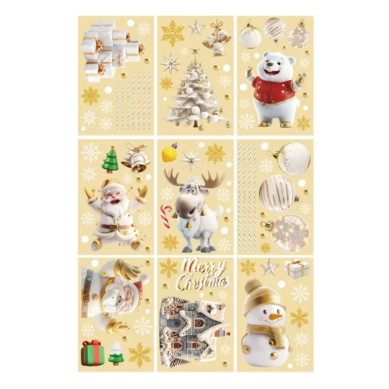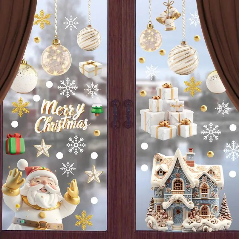 Christmas Window Clings Santa Claus Snowman Snowflake Stickers Reusable Double-Sided Static Waterproof Clings Christmas Decorati