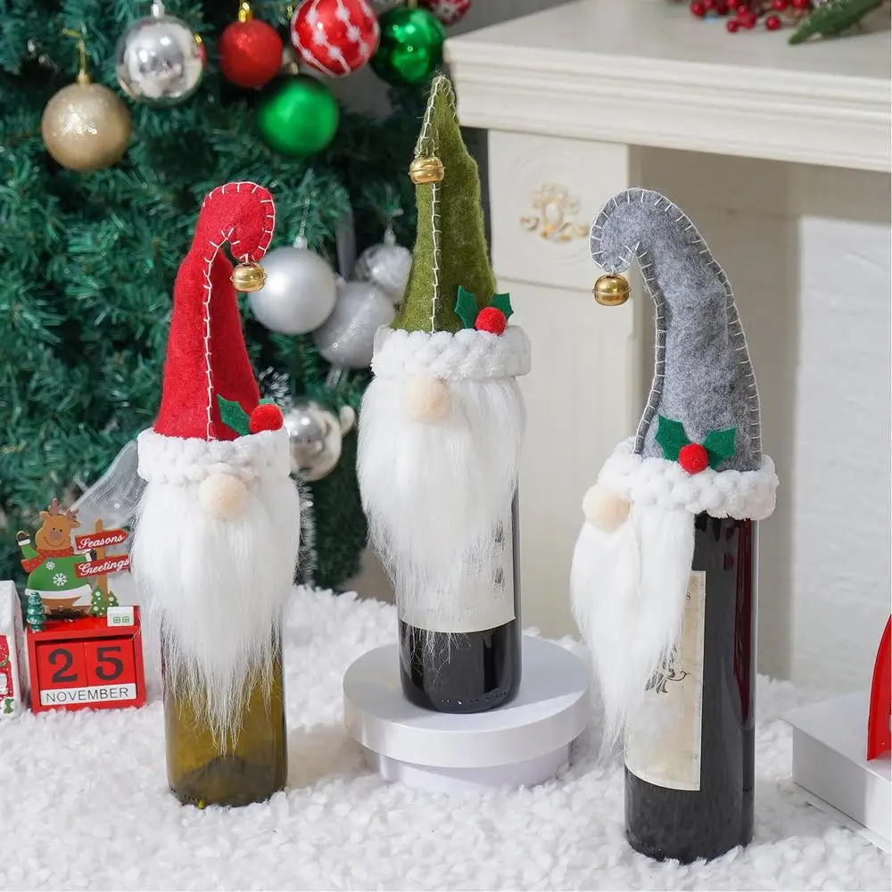 Christmas Wine Covers 3X Cute Champagne Bottle Cover Gnomes Holiday Wine Bottle Covers Swedish Tomte Gnomes Christmas Wine Bags