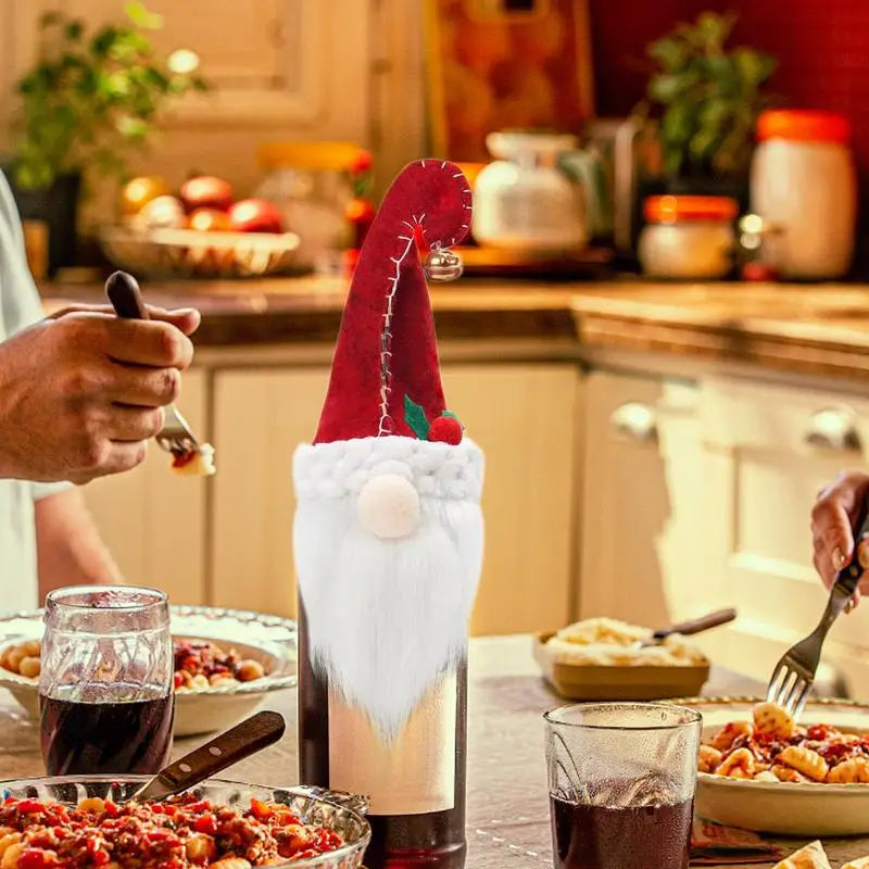 4.Table Decorations: Improve your Christmas parties with our wine bottle cover. Easily accommodate standard wine bottle sizes, this cover protects them from dust and adds a festive look. Perfect for any dining table, it's a convenient addition to your holiday decorations
