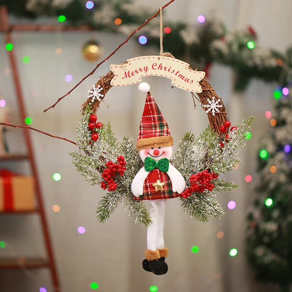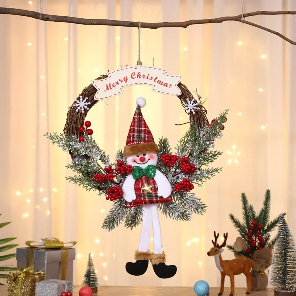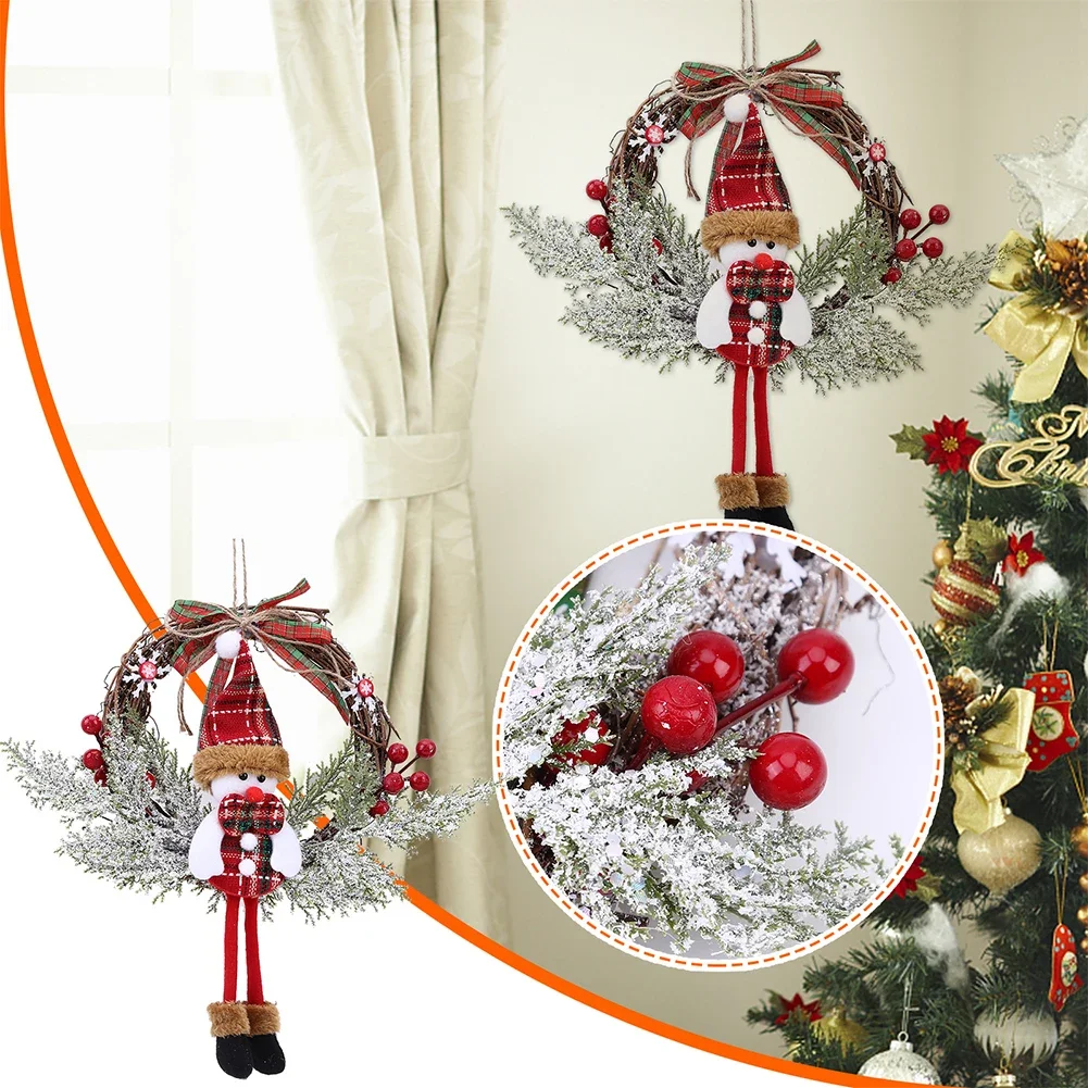 Christmas Santa Berry Garland Multifunctional Snowman Hanging Garland Artificial Festival Theme for Holiday Indoor Outdoor Decor