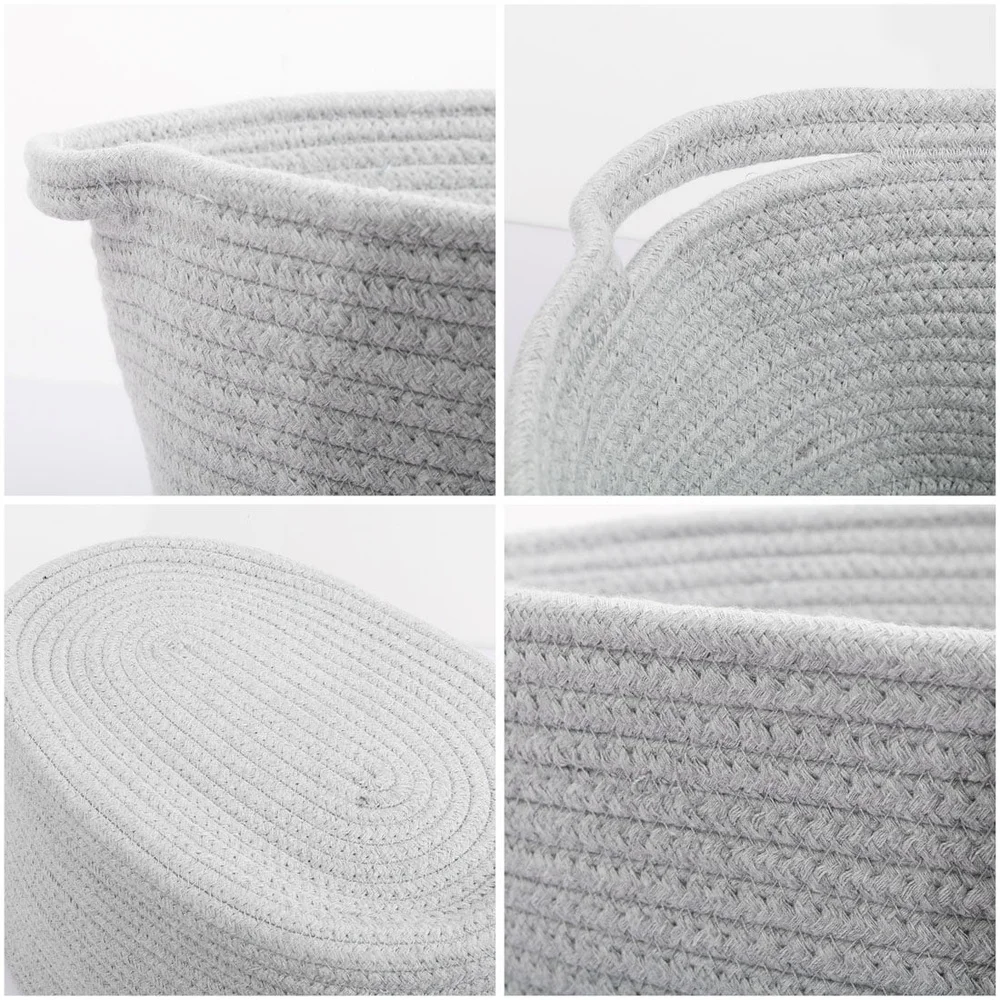Cotton Rope Storage Bin Basket Organizer Laundry Clothes Soft Safe Collapsible Lightweight Oval Design Home Decor Gift