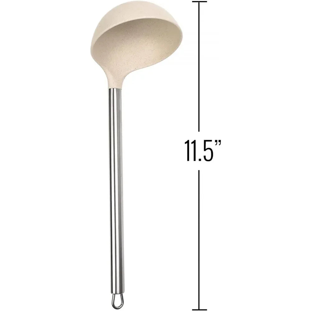 Cream Wheat Straw Ladle with Stainless Steel Handle Kitchen Utensils, 13 Inch