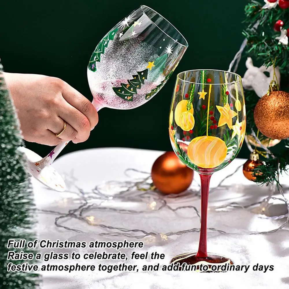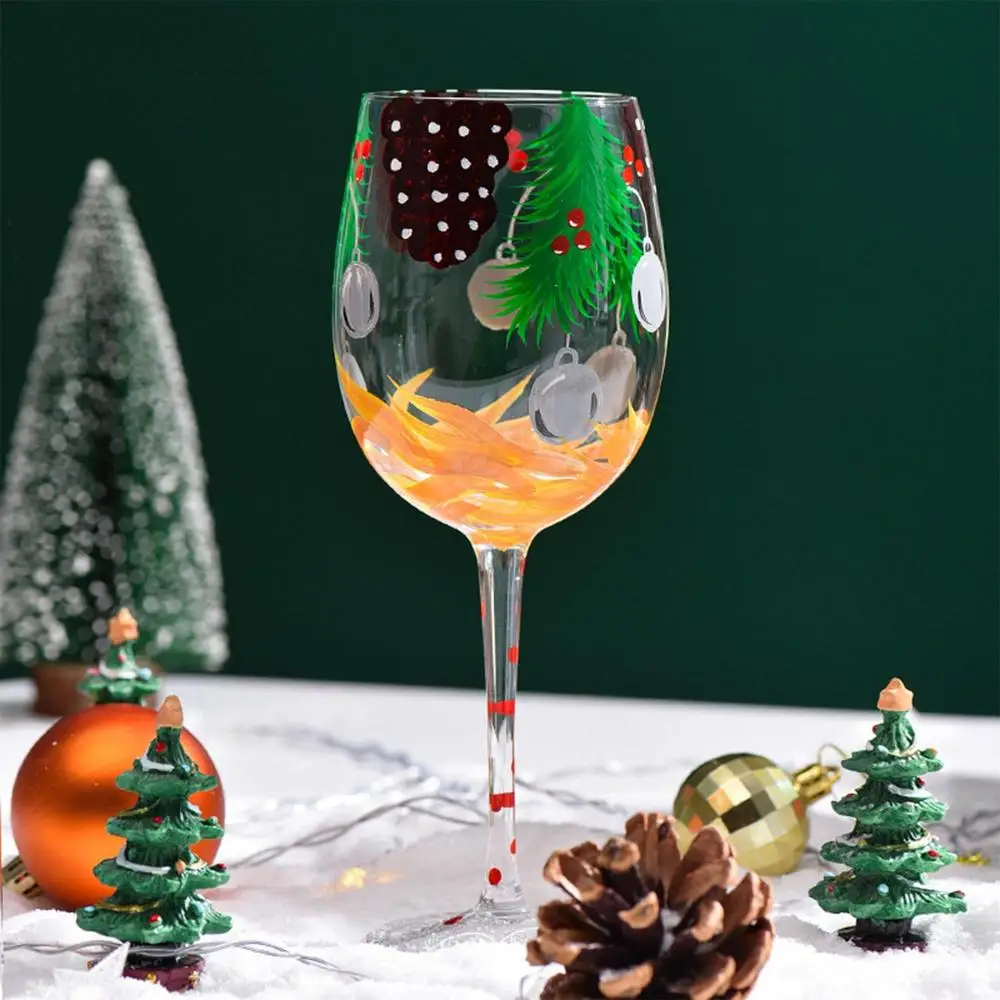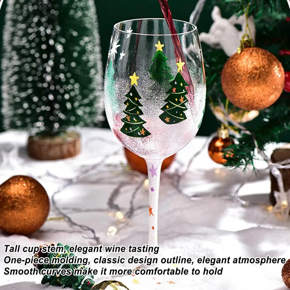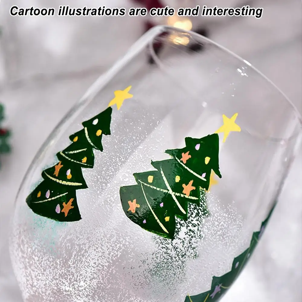 Creative Christmas Glass Cup Hand-Painted Christmas Tree Glass Goblet Red Wine Glass Christmas Theme Home Glass Cup Xmas Gift