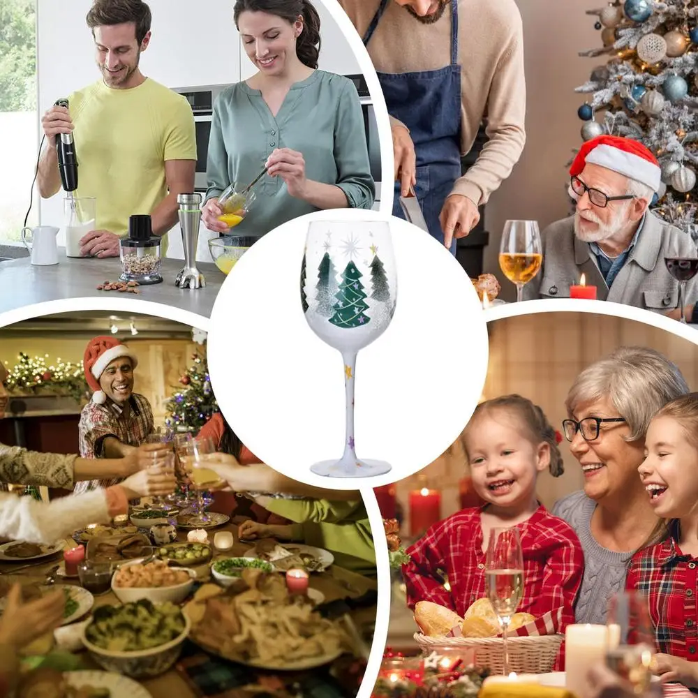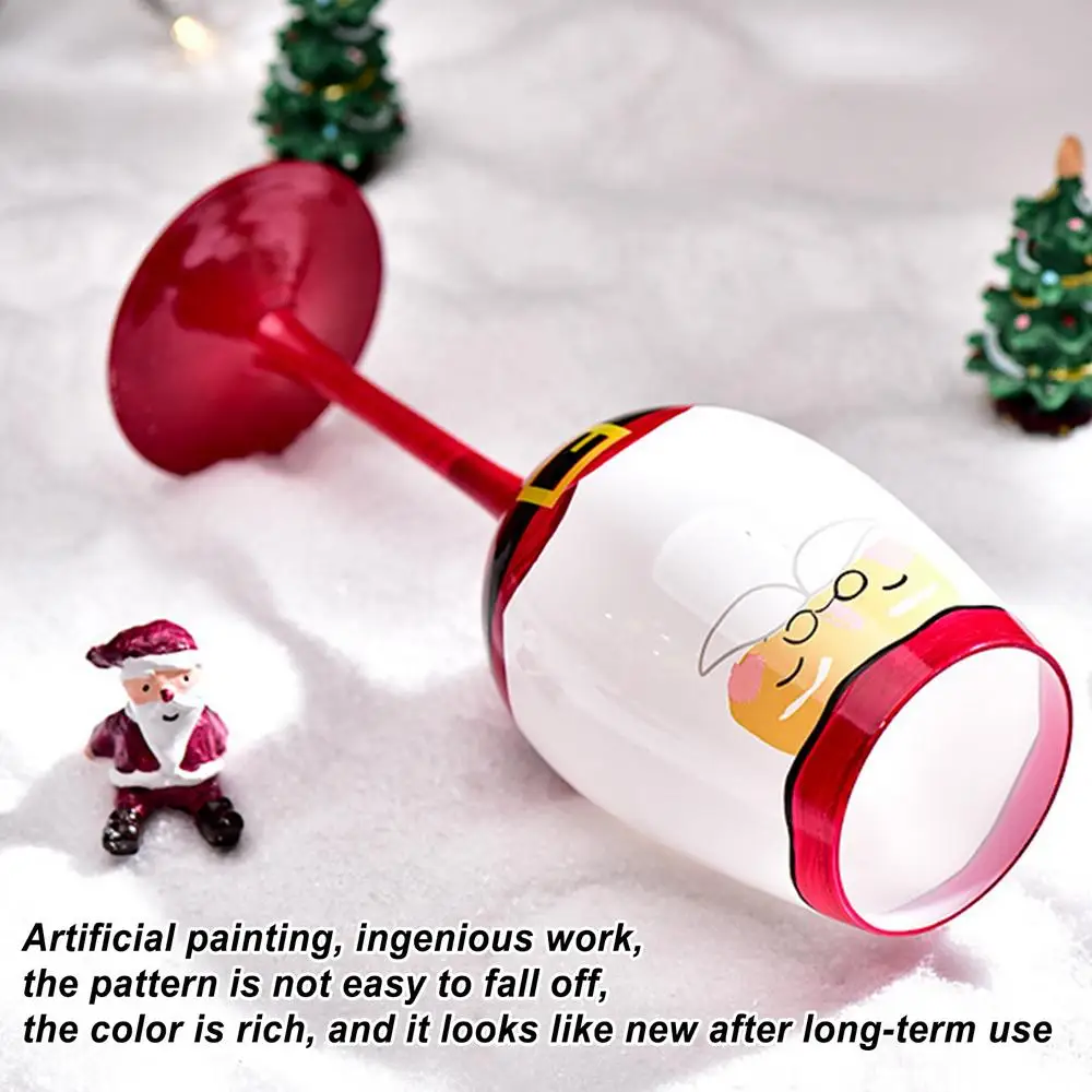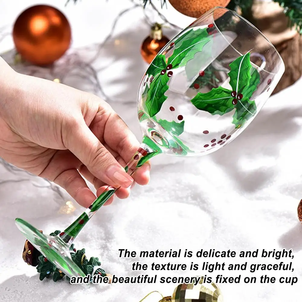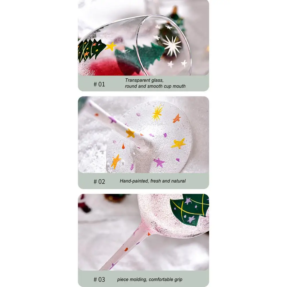 Creative Christmas Glass Cup Hand-Painted Christmas Tree Glass Goblet Red Wine Glass Christmas Theme Home Glass Cup Xmas Gift