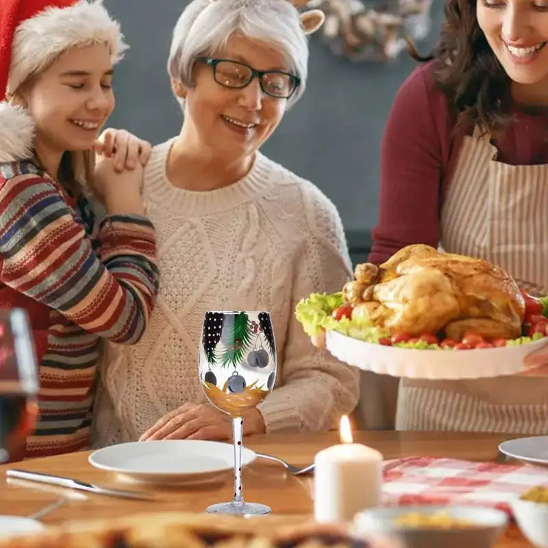 Creative Christmas Glass Cup Hand-Painted Christmas Tree Glass Goblet Red Wine Glass Christmas theme Home Glass Cup Xmas Gift