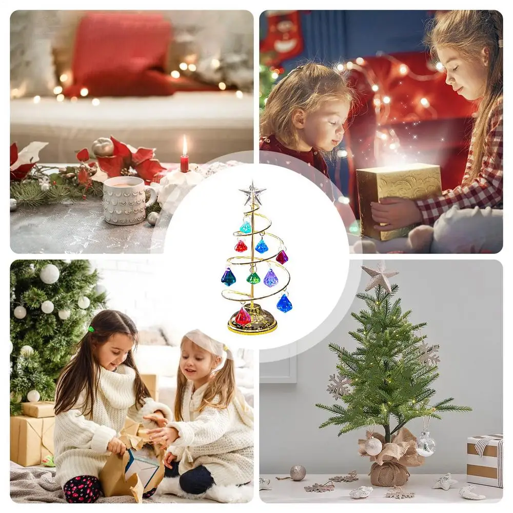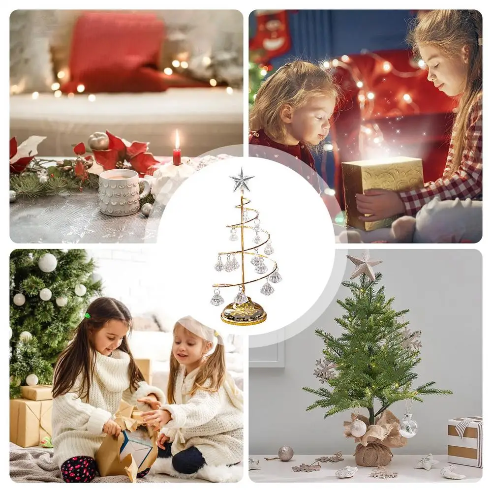 Crystal Christmas Tree For Desk Rotating Crystal Glitter Christmas Tree Electroplating Iron Art Winter Festival Tree Night Light