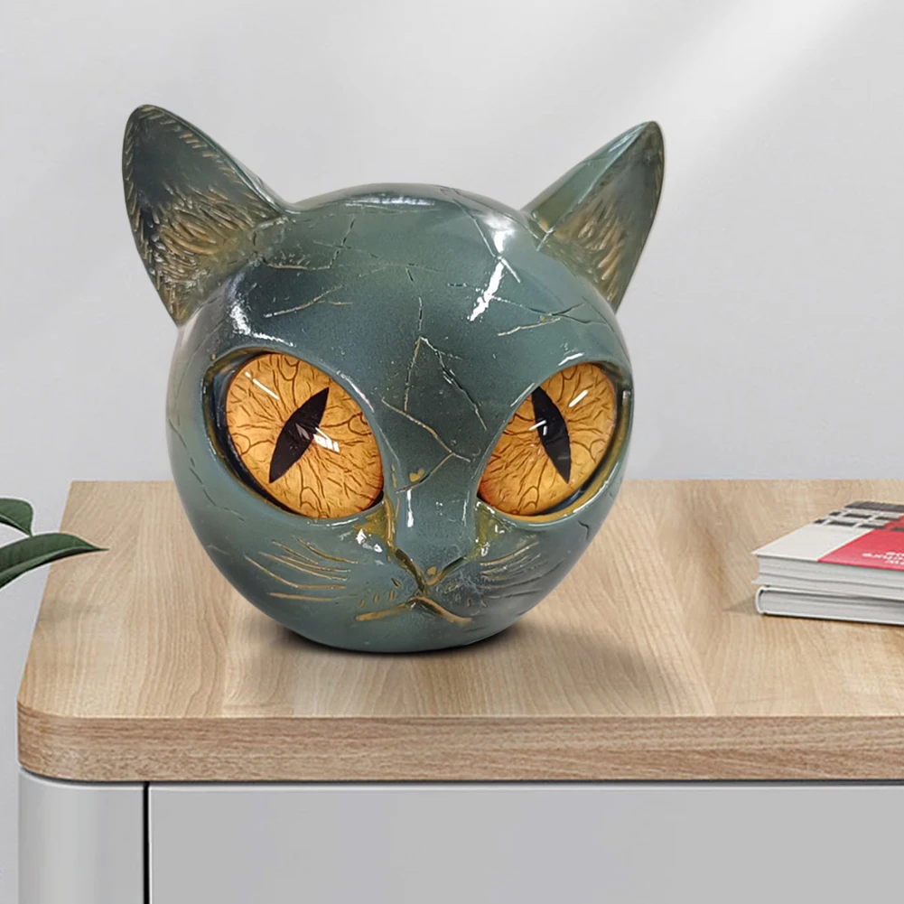 Decorative Cat Stone Figurine Amber Eyes Cat Statue Kitten Sculpture for Keepsake Gift Office Desk Decors
