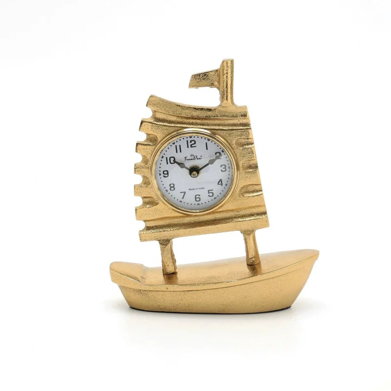 Decorative Table Clock with Gold Polished in Boat Shape-Desk clock