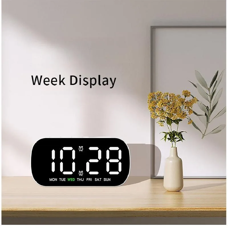 Digital Alarm Clock USB Powered Temperature Date Week Dual Alarm Night Mode Snooze Clock 5 Levels of Brightness 12/24H LED Clock