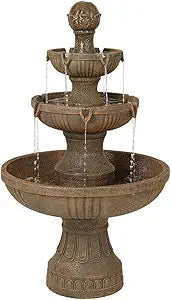 - 【Timeless charm for your spaces】An Italian 3 tier fountain or landscape fountain enhances a backyard water feature, while a porch fountain or patio water feature brings elegance to a corner, perfectly combining a garden waterfall with traditional design. Water flows from decorative flower at top into the three basins. A wonderful look for a courtyard or garden.