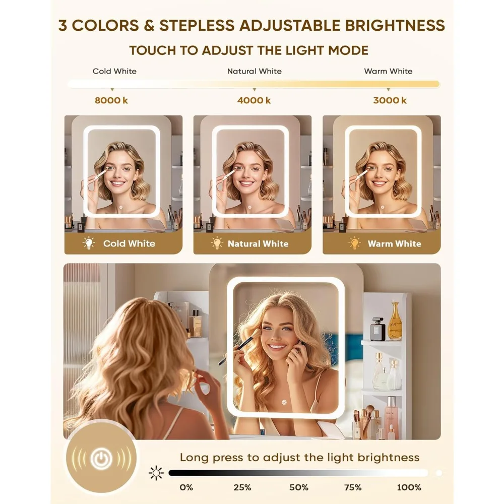 Dressing Table with Smart LED Mirror - Small Vanity Desk, 2 Drawers, 5 Shelves & Power Outlet