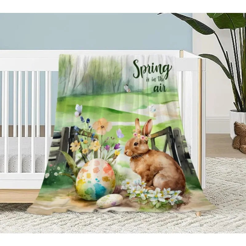 Easter throw blanket, farmhouse bunny egg rabbit blanket, Easter spring floral blanket for girls boys sofa soft plush blanket