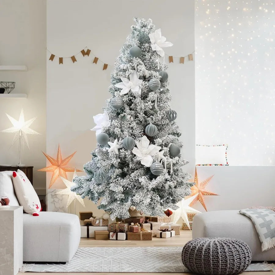 Elegant Christmas Ornaments Set of 12 3.15Inch Flocked Velvet Balls with Hand Painted Designs in Dusty Blue Perfect for Holiday