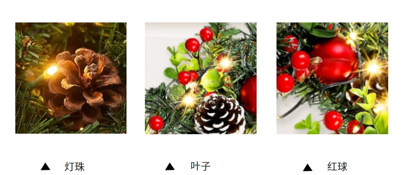 Elegant Red Christmas Wreath LED PVC Red Fruit Christmas Wreath Window Door Wall Ornament Decorations Home Halloween Decor Gifts