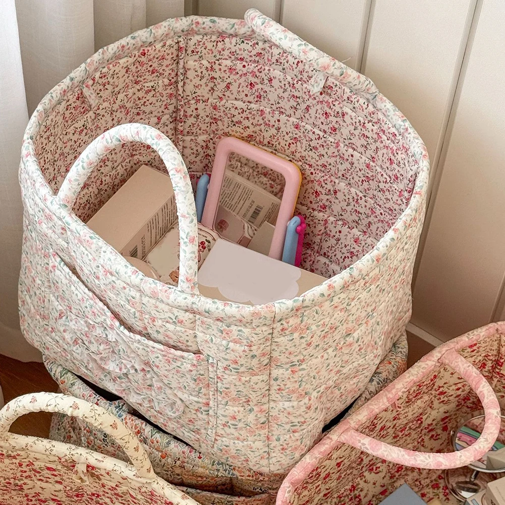 Fabric Pastoral Debris Organizing Bag with Easy Carry Handles Sundries Storage Organizer Washable Clothes Hamper for Shelves Closet Laundry Home Office Decor