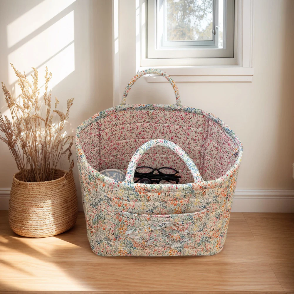 Features: 1.Vintage Floral Design: This elegant quilted basket showcases charming floral patterns that add a touch of retro elegance to any space. It enhances your home decor with a delightful pastoral vibe, perfectly blending with existing furniture with cloth storage basket. 2.Spacious Capacity: Designed with ample storage space, this debris organizing bag is ideal for camping, shopping, or organizing clothes, books, crafts, or other household essentials. Whether placed in the bedroom, living room, or nursery, it keeps your space tidy and stylish. 3.Sturdy Soft Construction: Crafted from premium cotton fabric with a quilted texture, this laundry storage bin is not only sturdy and sturdy but also gentle on your belongings. The padded construction ensures durability while maintaining a lightweight and flexible design. 4.Convenient Carrying Handles: Featuring reinforced fabric handles, this sundries storage organizer allows for effortless transport between rooms. Whether you're tidying up a space or carrying laundry, the ergonomic handles make it easy and stress-free. 5.Foldable Space-Saving Solution: When not in use, this washable clothes hamper can be easily folded flat, making it a practical and space-saving storage solution for small apartments, dorms, or closets. Specification: Origin: Mainland China Product size: 320.00x260.00x250.00mm/12.6x10.24x9.84inch Material: Fabric Note: Due to different monitor settings and lighting conditions, the actual color of the item may vary slightly from the pictures. Thanks for your understanding! Please allow a 1-2 cm difference in measurements due to manual measuring.
