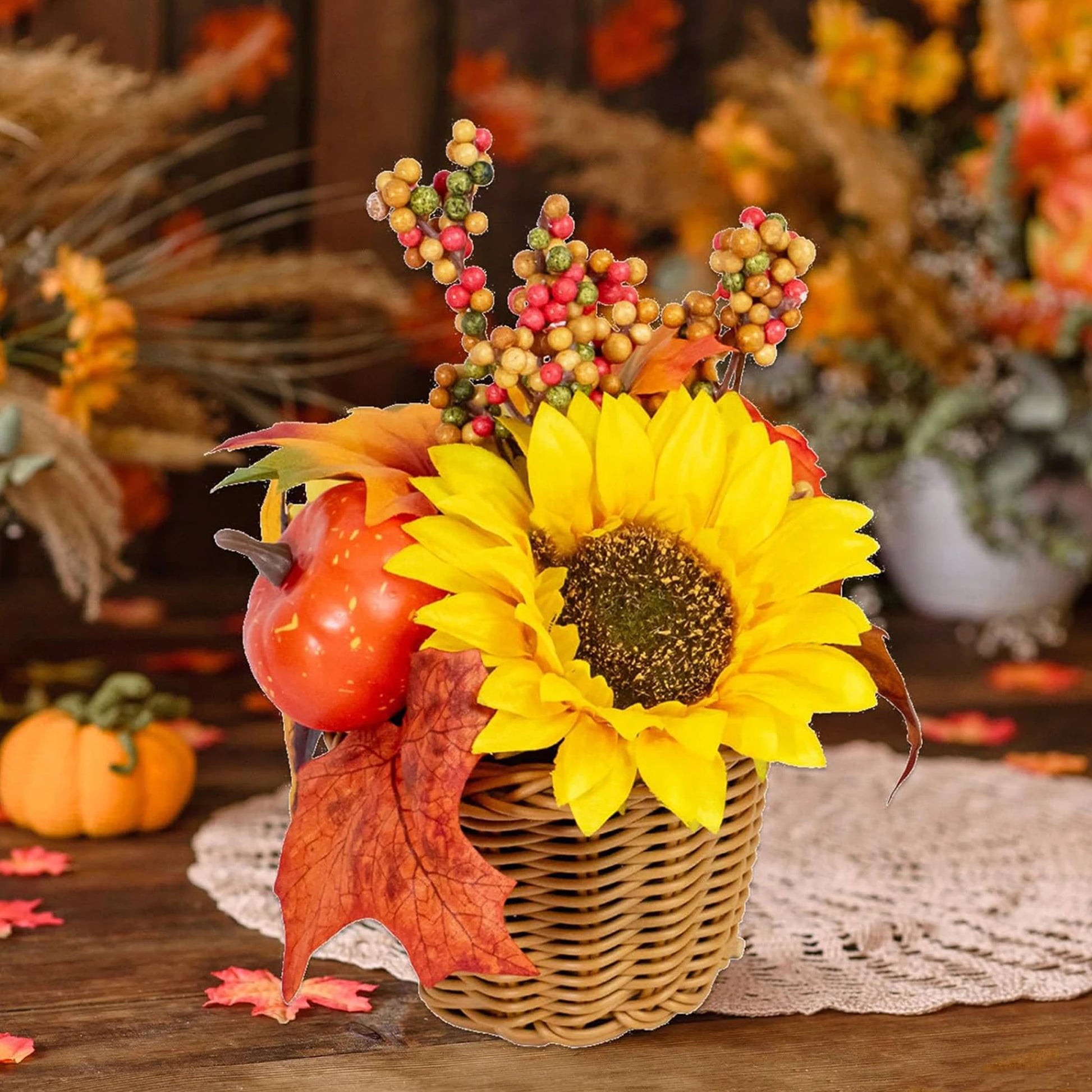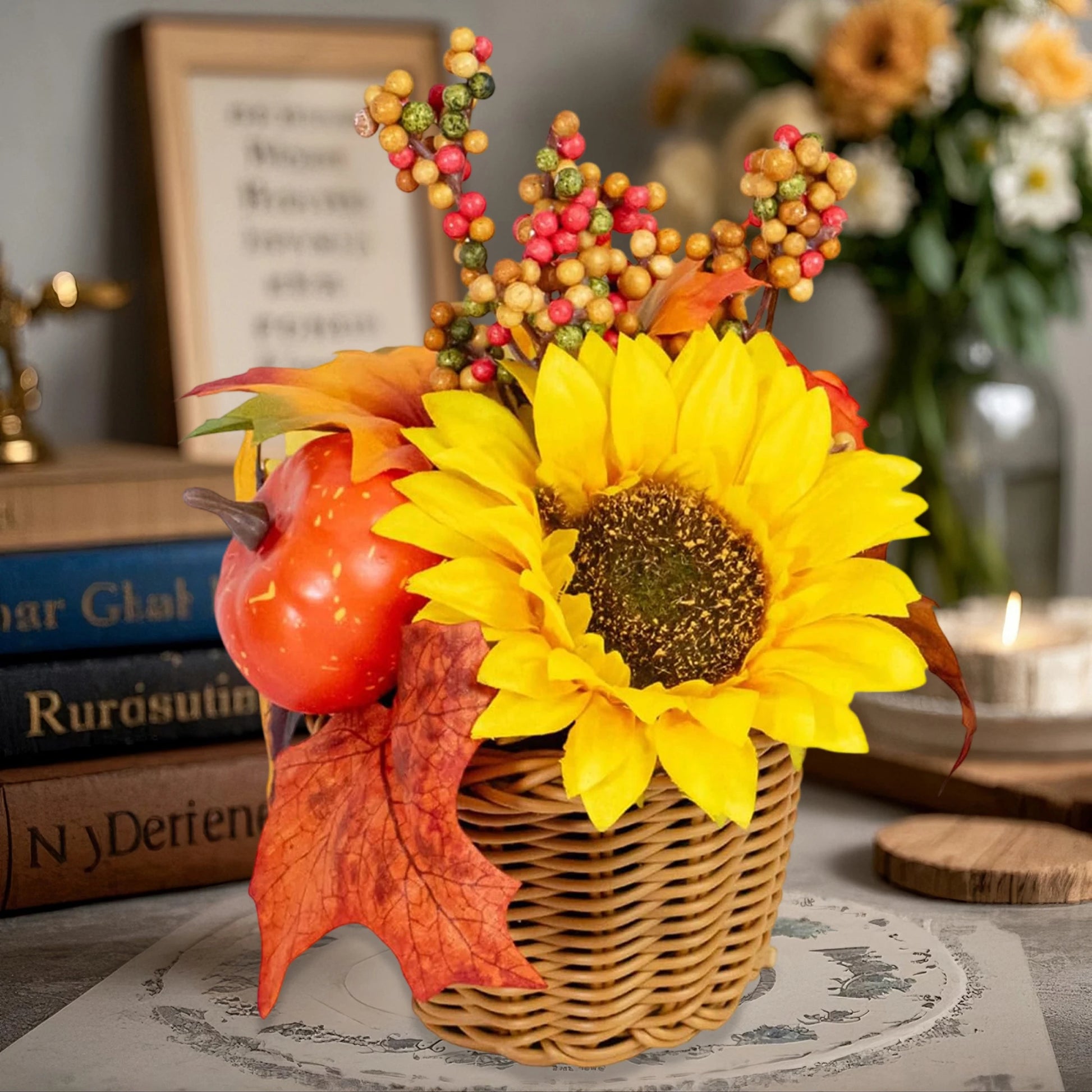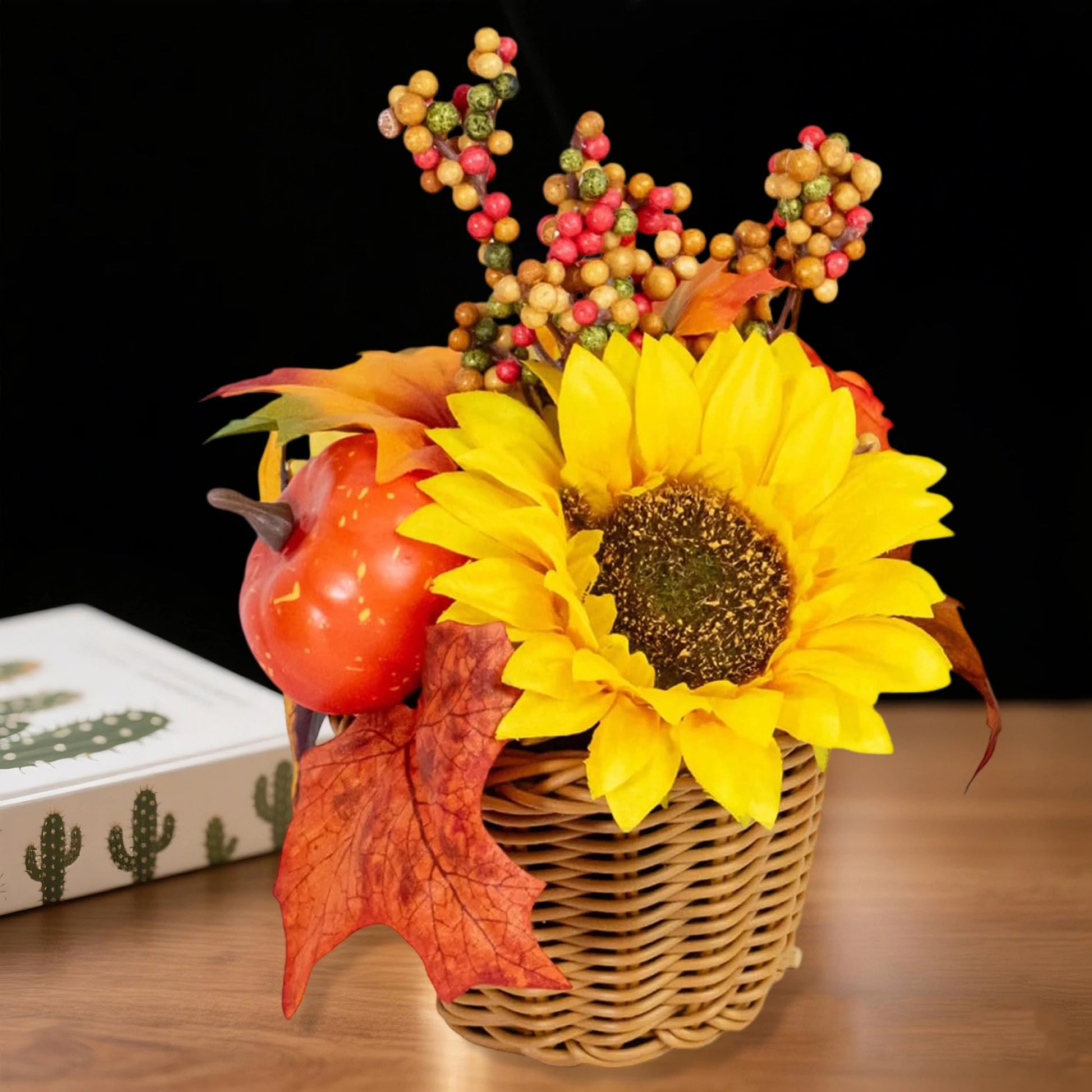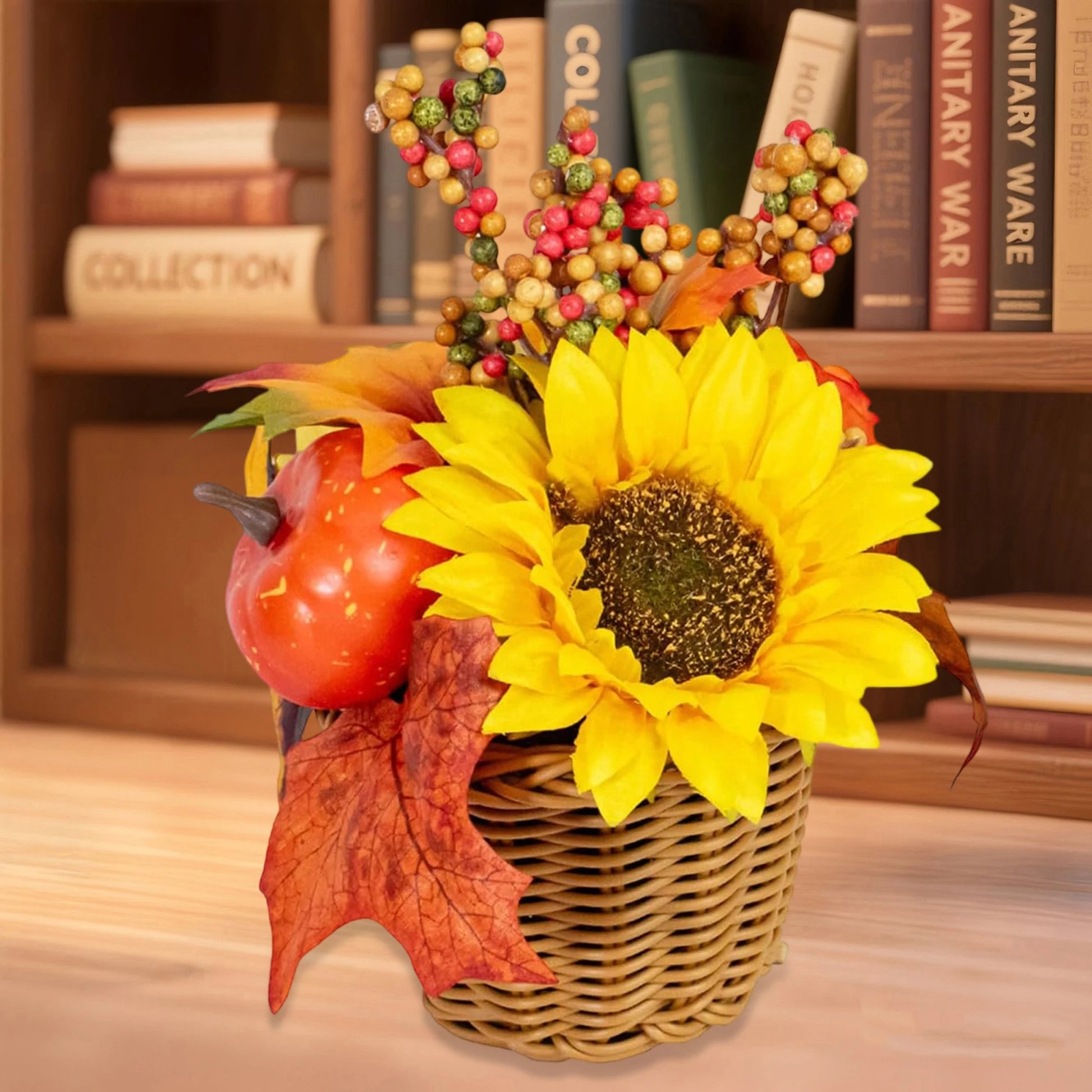 Thanksgiving Flower Basket Ornaments Creative Pumpkin and Sunflower Table Signs for Home Office Party