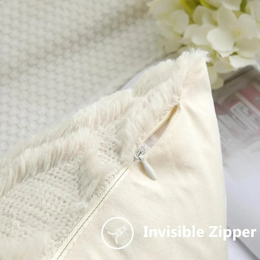 Fall Throw Pillow Covers 18x18 Inch Set of 2 Soft Plush Decorative Faux Fur Beige Solid Couch Pillow Covers Accent Farmhouse Ne
