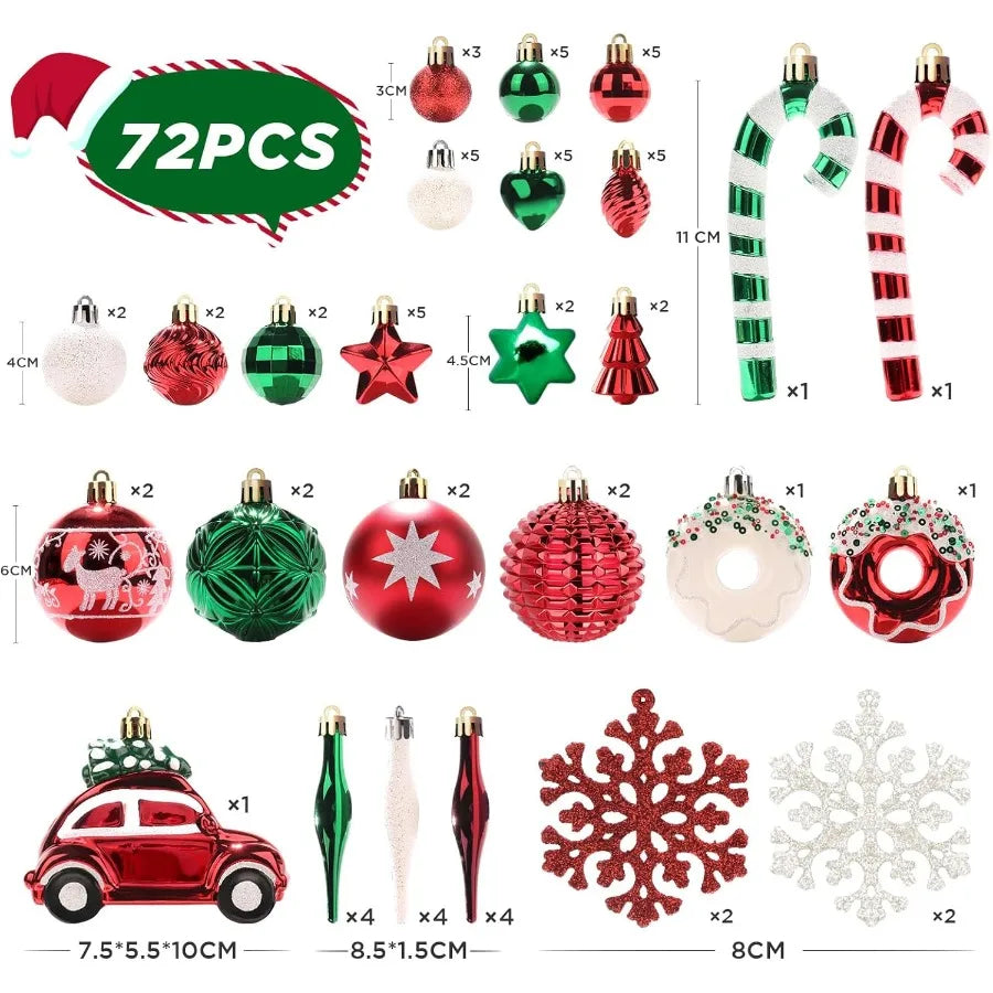 FestiveBliss 72 Pcs Christmas Ball Ornaments Colorful Variety Shatterproof Ornaments with Hanging Loops for Christmas Tree Deco