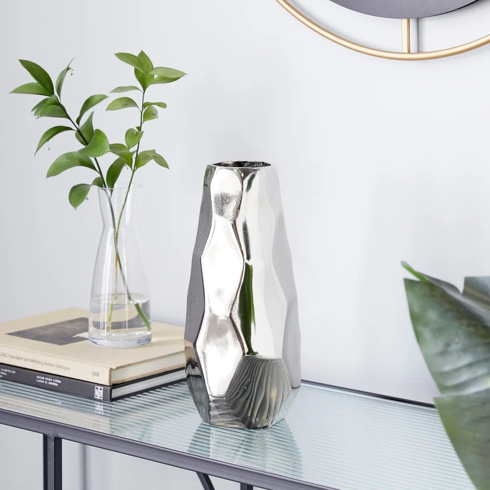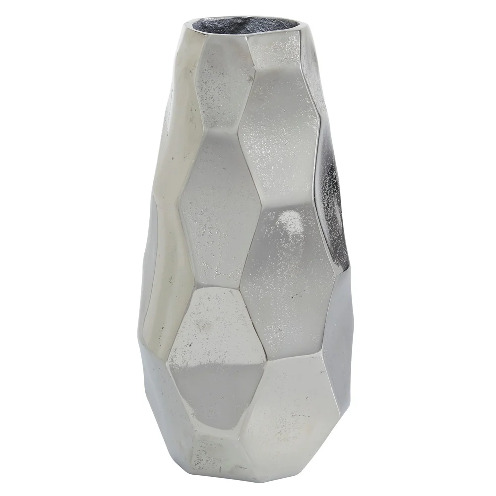 Geometric Silver Aluminum Vase Modern Decorative Home Accent Wipe Clean Lightweight Durable Indoor Use Stylish Decorative