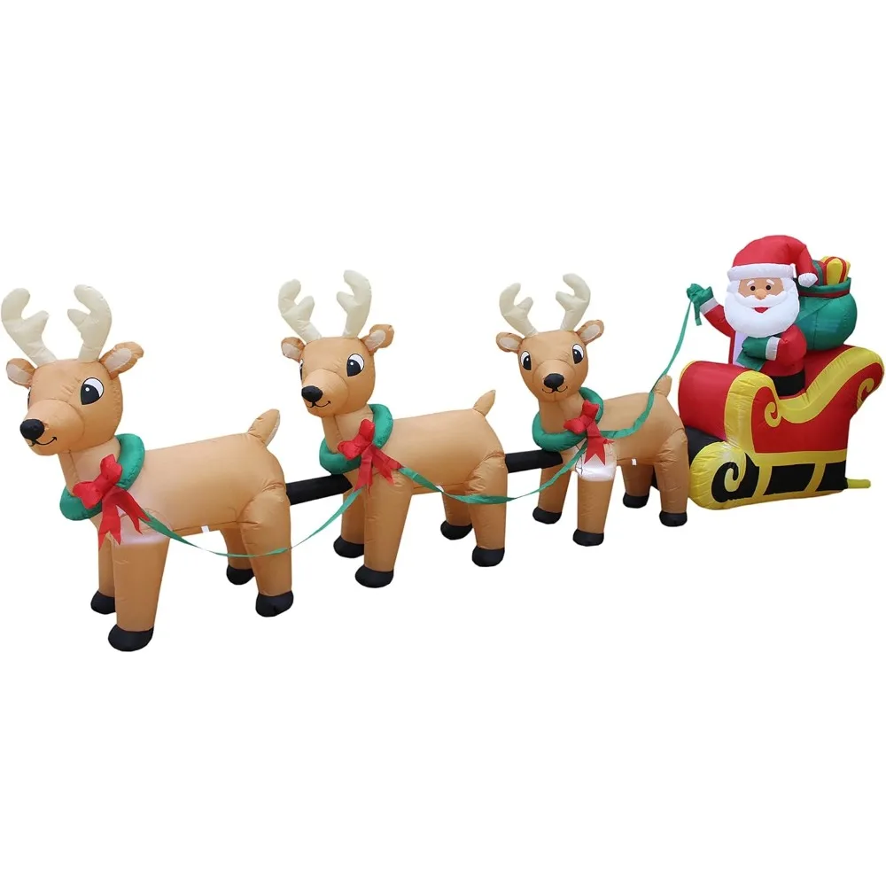 Giant 12-Foot Santa Sleigh with Lighted Reindeer Outdoor/Indoor Christmas Decor