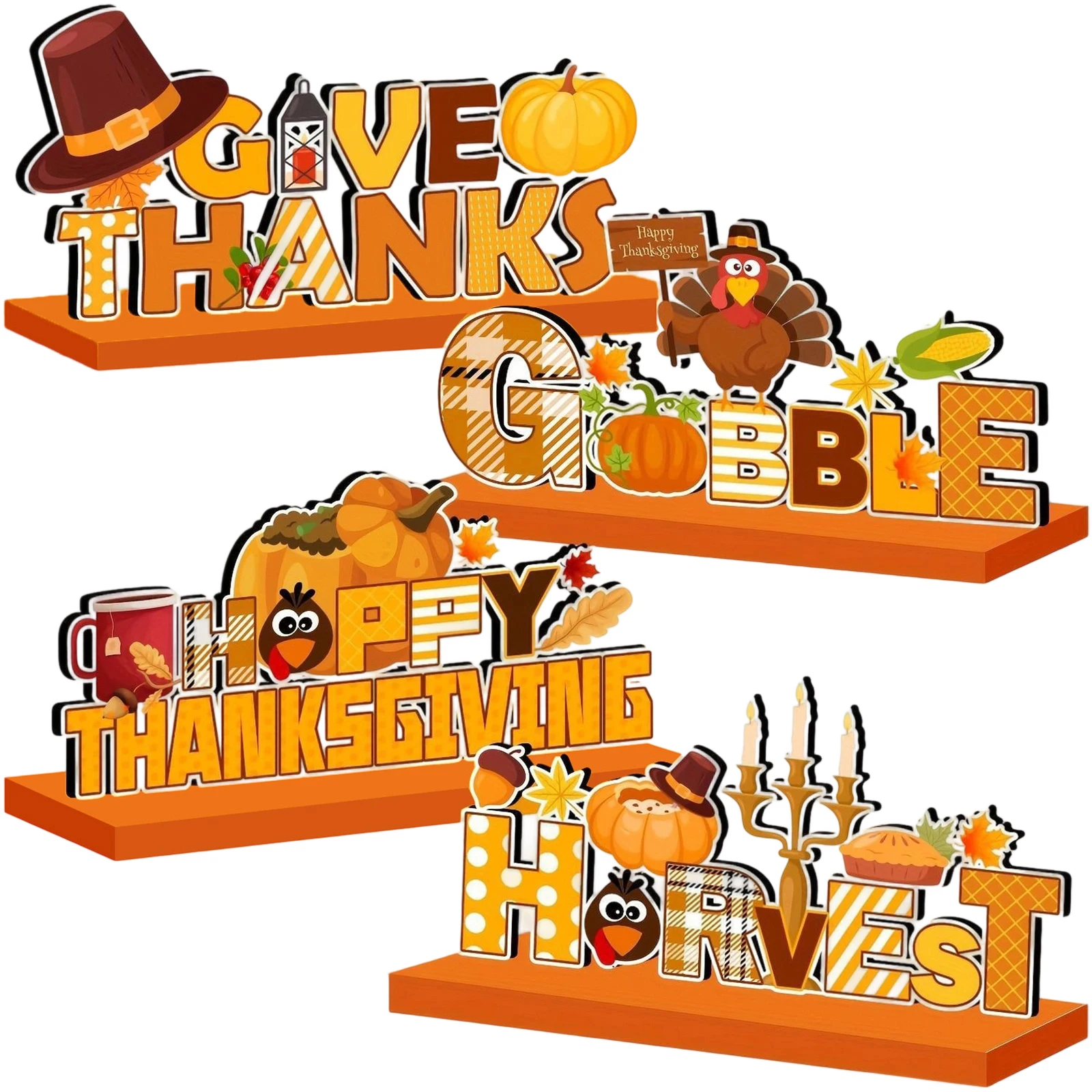 Harvest Pumpkin Centerpiece Fall Table Decor Autumn Thanksgiving Decoration Wooden Desk Ornament Turkey Letters