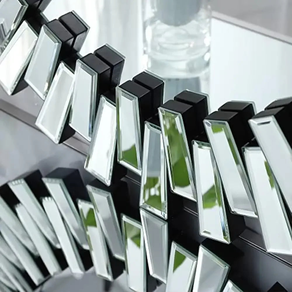 Modern and unique mirror wall decor with glass frame creates gorgeous and classic look. Well made frame surface increases stereoscopic and sense of reality. When light shines on sunburst surface adds natural shadow, give a better sense of brightness and space.