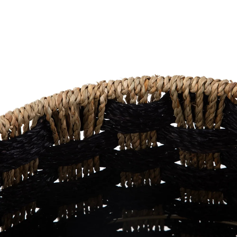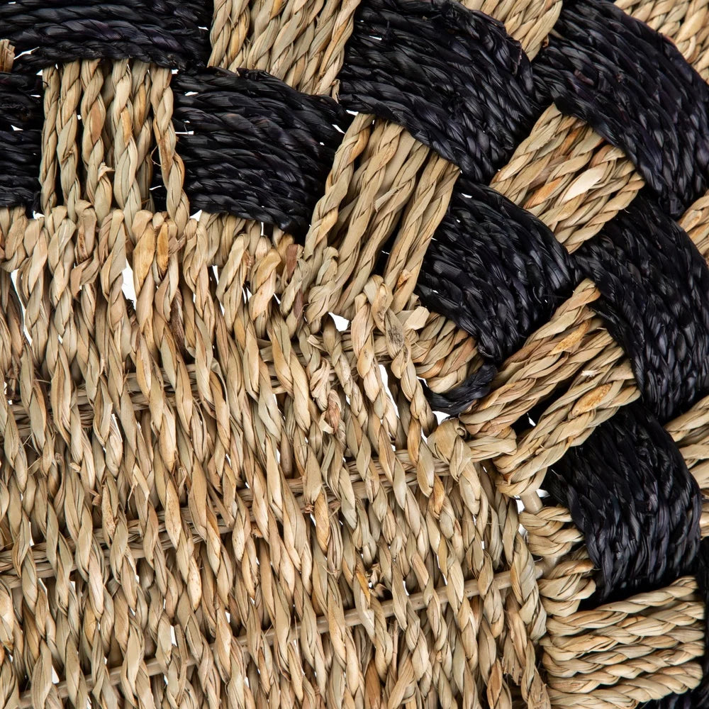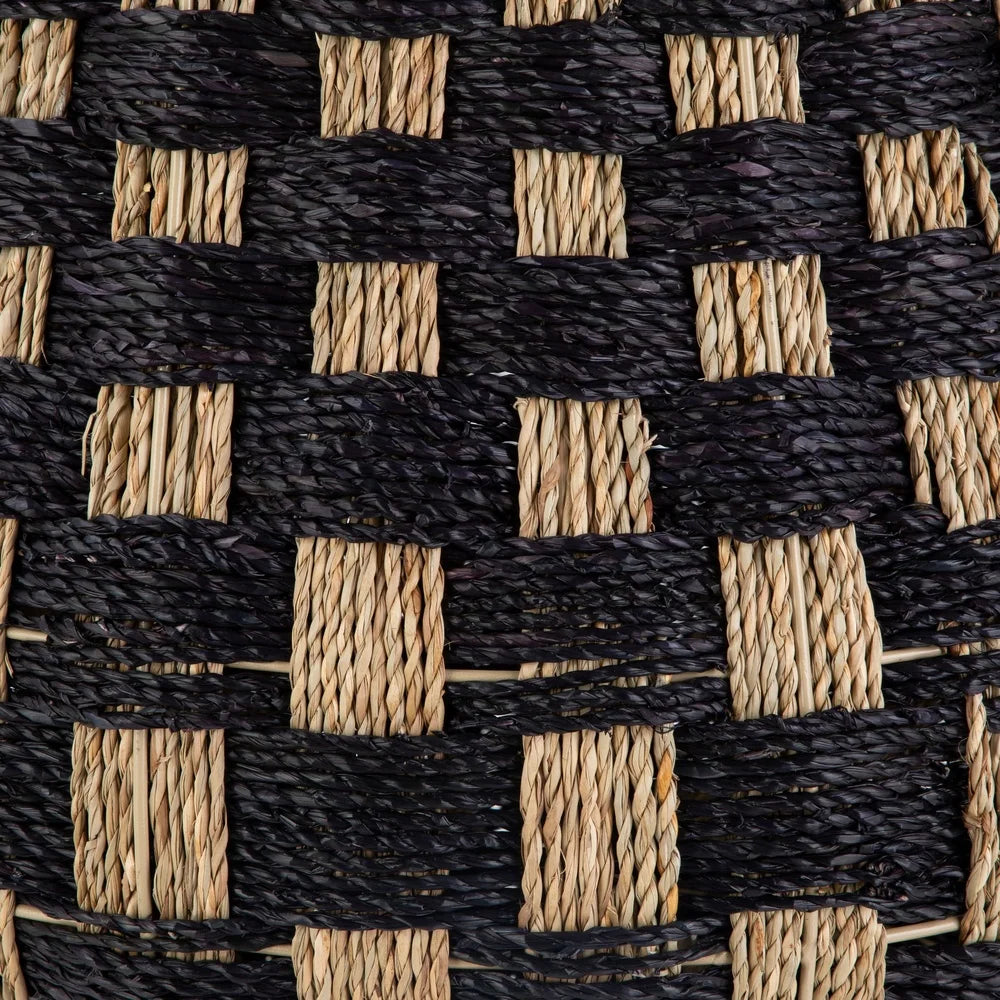 Large Round Checkered Seagrass Storage Basket with Handles, 2 Pack