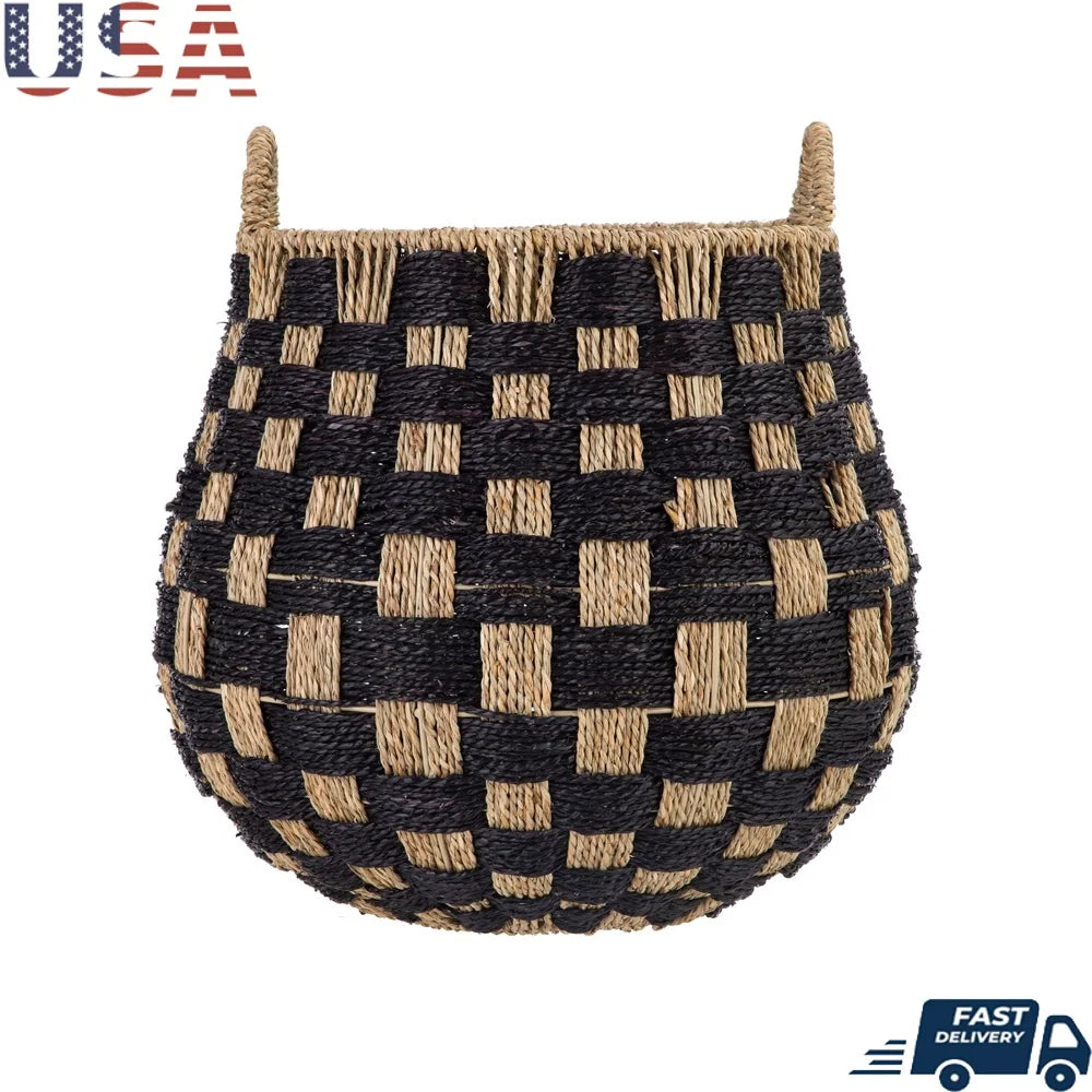 Large Round Checkered Seagrass Storage Basket with Handles, 2 Pack. This baskets are also designed with two reliable sewing handles to make carrying and transporting stored items easy. Variances in seagrass color may be apparent due to product being handcrafted using a natural material.