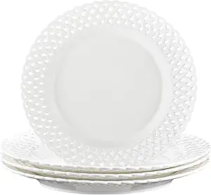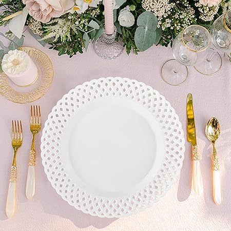 New Design Large Dinner Plates: Introducing You A Fresh And Feminine Graceful Design To You - This 12 H Round Plates Set Is A Twist On The Classic Country Look With Its Clean, Elegant Motif, Beautiful Basketweave Rim, And Glossy Finish, Providing A Distinct G Table Setting, Looks Luxury, Easy To Dr Up Wedding, Thanksgiving And Christmas Or Other , Perfect For Entertaining, Formal Dinner Party Or Daily Use