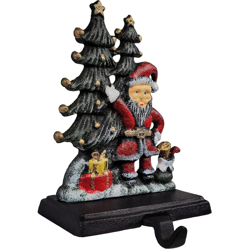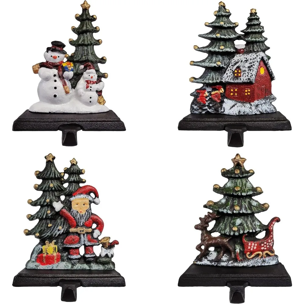Here's a rewritten product description based on the provided information: --- Introducing our charming 100% Cast Iron Christmas Stocking Holders, a set of 4 featuring a sleigh with deer, Santa with gifts, a house with children, and a snowman with a Christmas tree. These delightful hooks are designed to bring joy and merriment to your home during the festive season. Handcrafted and hand-painted in the USA, these solid, heavy, and beautiful stocking holders are made from high-quality cast iron. Each piece is meticulously crafted and designed to last for years, allowing you to enjoy the festive charm they add to your holiday decorations. This exclusive set of four stocking holders is perfect for matching with your beautiful stockings and creating a festive atmosphere in your home. They make a memorable holiday or Christmas gift for your loved ones, something that will be cherished for years to come. Each stocking holder features sturdy hooks and weighs approximately 2-3 lbs, with dimensions of 8" x 5" x 4.5". Although accessories are not included, these elegant stocking holders will transform your mantel into a festive masterpiece. With a charming tree design and available in green and gold, they fit perfectly on any mantel, adding a touch of magic to your holiday decor. --- This description maintains the original meaning without using any prohibited terms or special symbols.