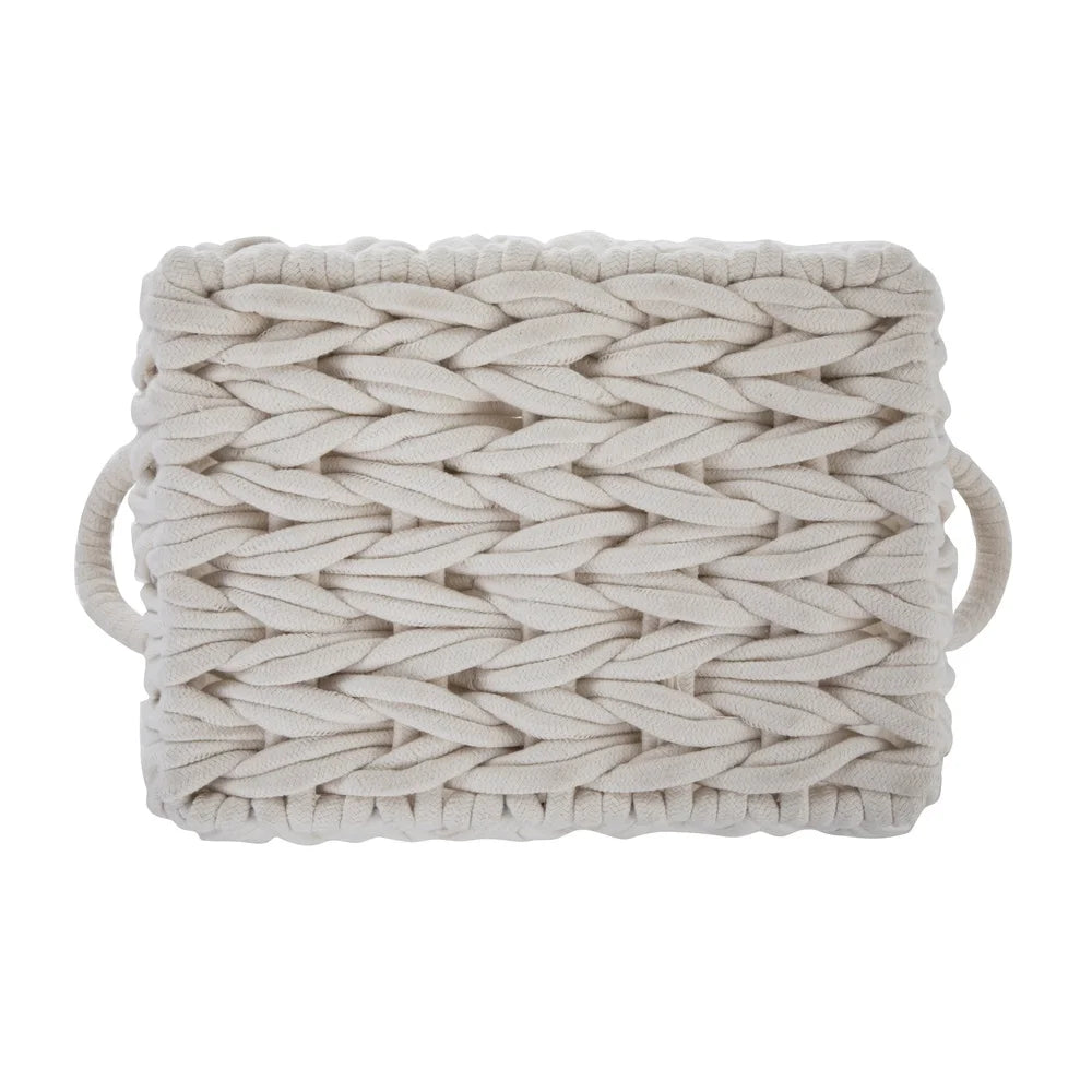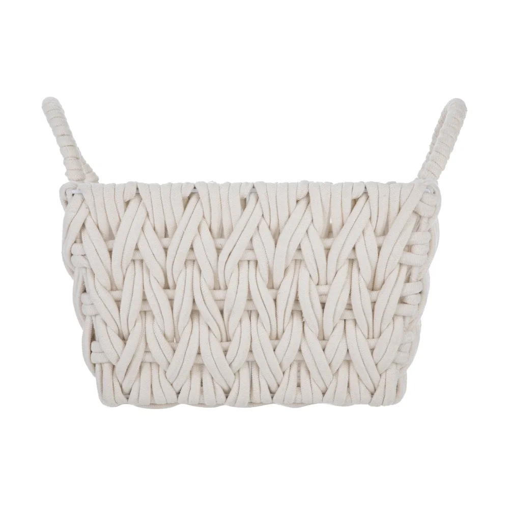 Medium White Woven Rope Decorative Storage Basket Handwoven Storage Organizer Loop Handles Bohemian Home Decor Basketweave