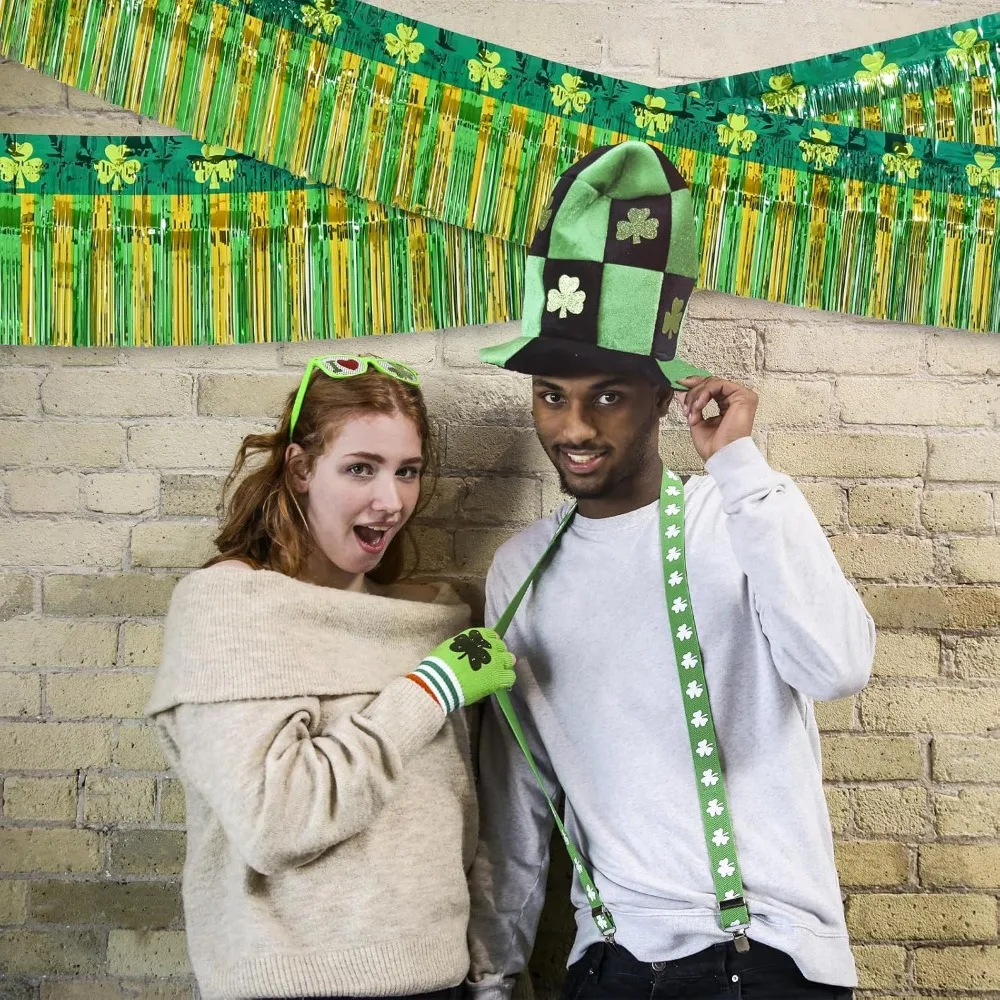 - 🍀 PACKAGE INCLUDES: 4 Packs foil fringe garland / metallic tassel banner with shamrock pattern, each garland is 1.24 feet wide * 19.68 feet long, perfect St Patricks Day decorations.