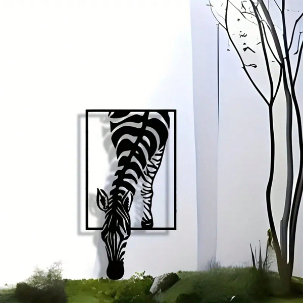 Minimalist Zebra Metal Wall Art - Handcrafted Black & White Animal Sculpture for Modern Spaces