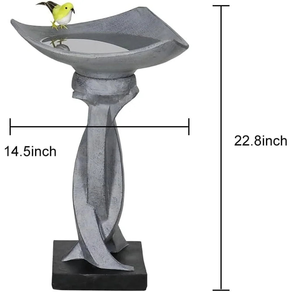 Designed with a unique lotus shape bird bath with modern geometrical pedestal, the outdoor pedestal bird bath adds a contemporary element touching to any outdoor space. Measures 14. 5" in diameter x 22. 8" H overall. Perfect size makes this concrete outdoor bird bath fountain serve a dual purpose as both a decorative fountain and a cement garden bird bath, making it a substantial and eye-catching garden decoration to your outdoor space.