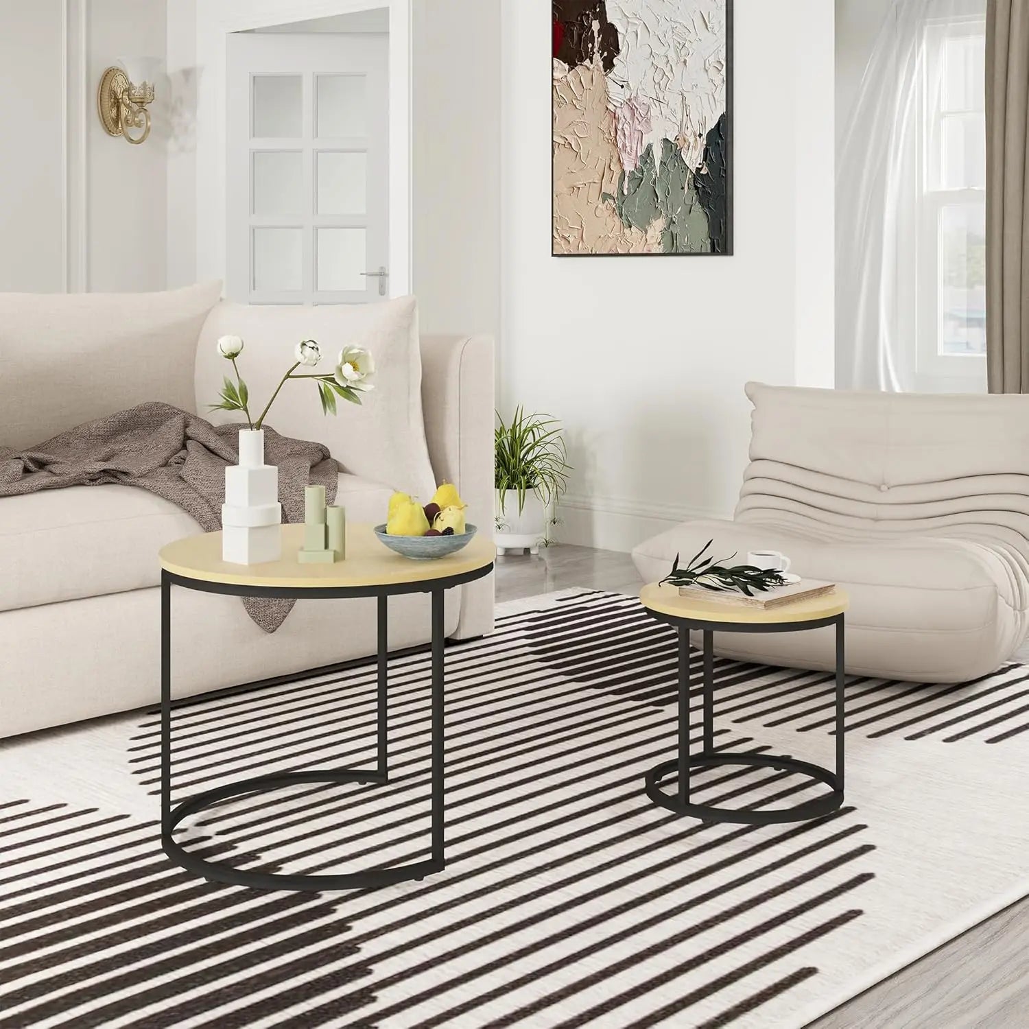 - 【Versatile and Stylish Design】The unique semi-circular metal table legs and round table top design give these nesting tables an elegant and simple look. They can be used as a coffee table set, end tables, or even as bedside tables, adding versatility to your home decor.