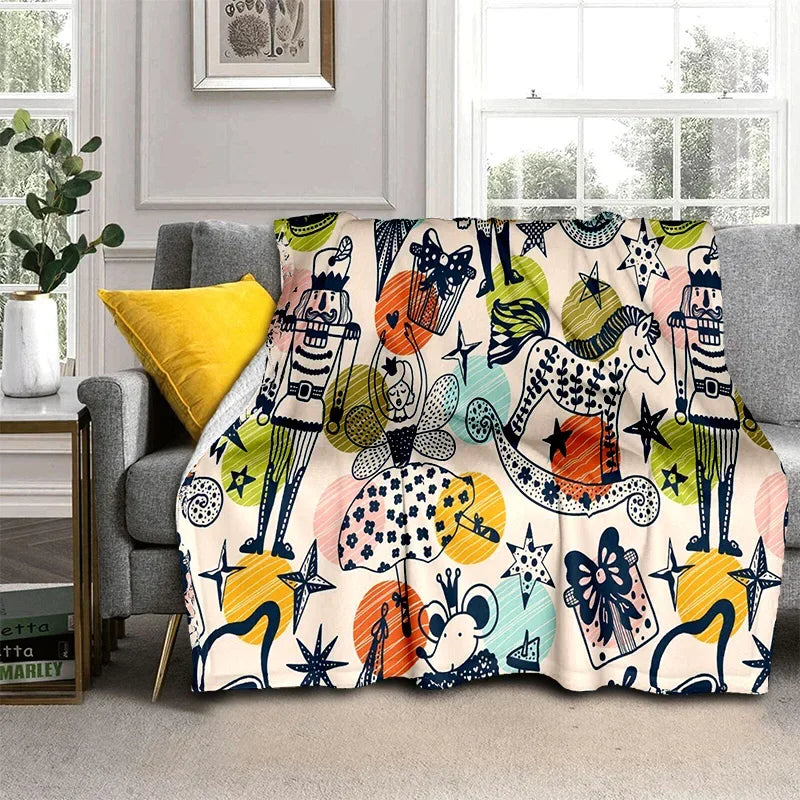 Nutcracker Christmas Tree Cartoon Blanket,Soft Throw Blanket for Home Bedroom Bed Sofa Picnic Travel Office Cover Blanket Kids