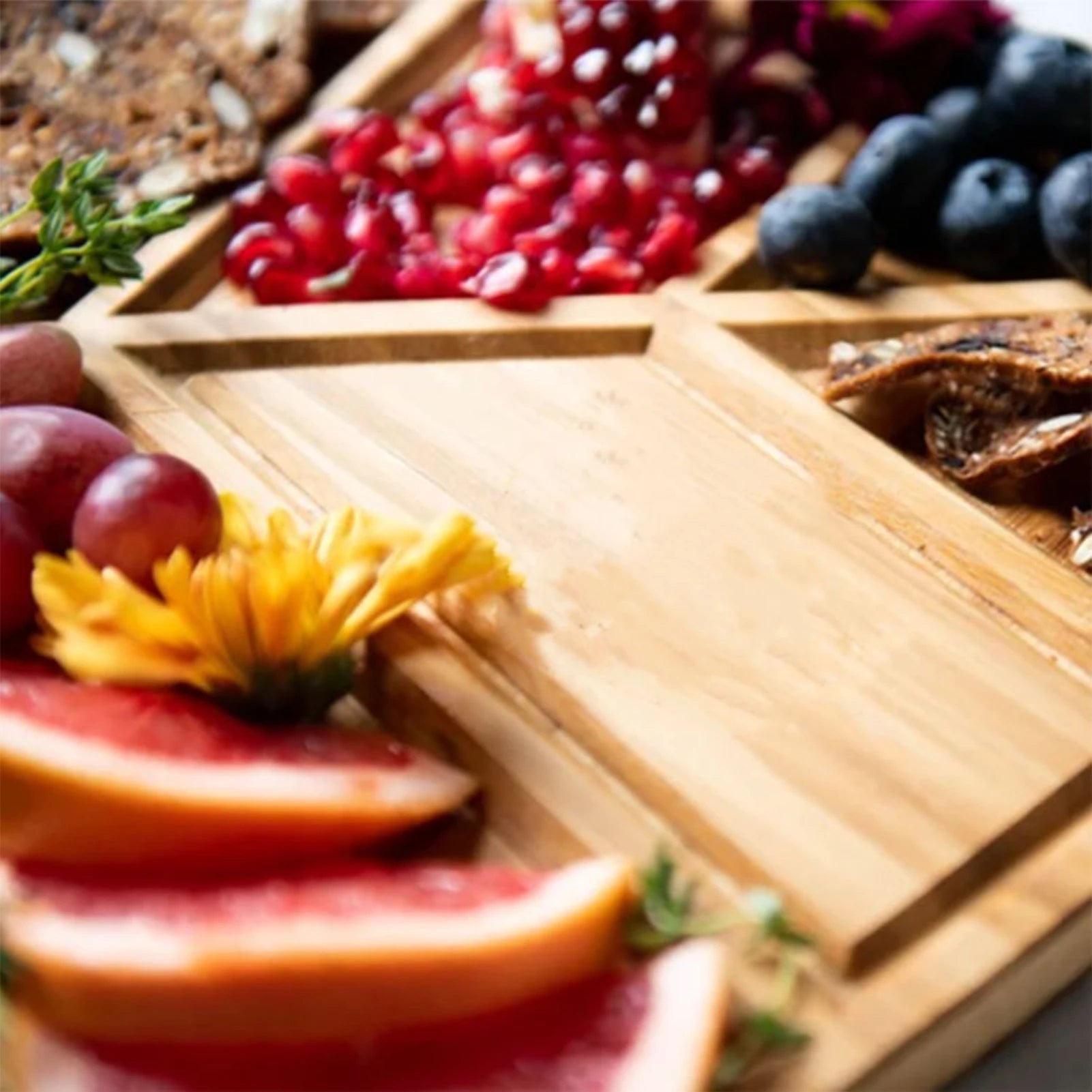 1. Safe material: The charcuterie board is made of wood, which is wearable, ensuring a long service life.