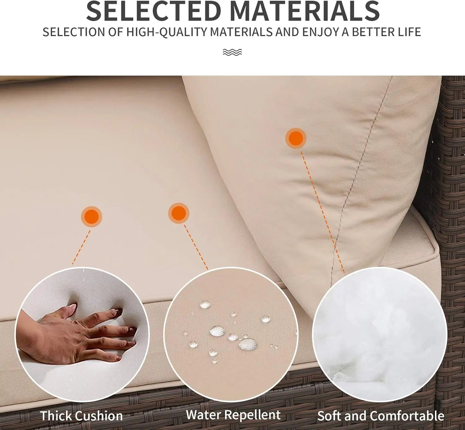 COMFORTABLE: The non-slip seat cushions filled with 4" thick high resilience sponge for superb comfort and durable, breathable cushion cover with zipper is 250G polyester water repellent,UV-resistant, easy to remove/replace and washable.