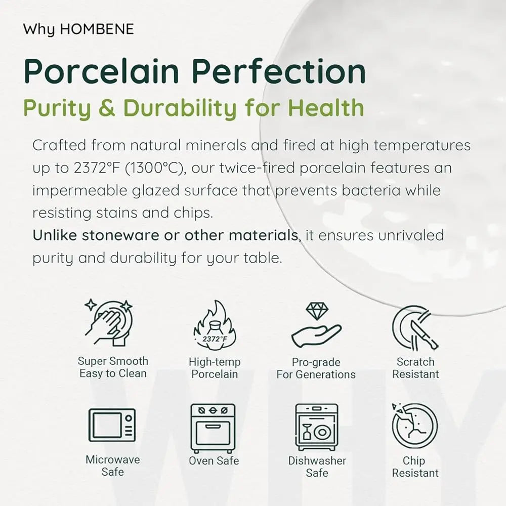 Cleaning Is A Breeze! Porcelain Dinnerware Set Provide Exceptional Fine Dining Experience But Requiring Low Maintenance. Food Debris Can Be Easily Removed From The Plates Set. Ultra-Hygienic, Easy To Clean And Scratch Resistant! No Odor, No Stains.