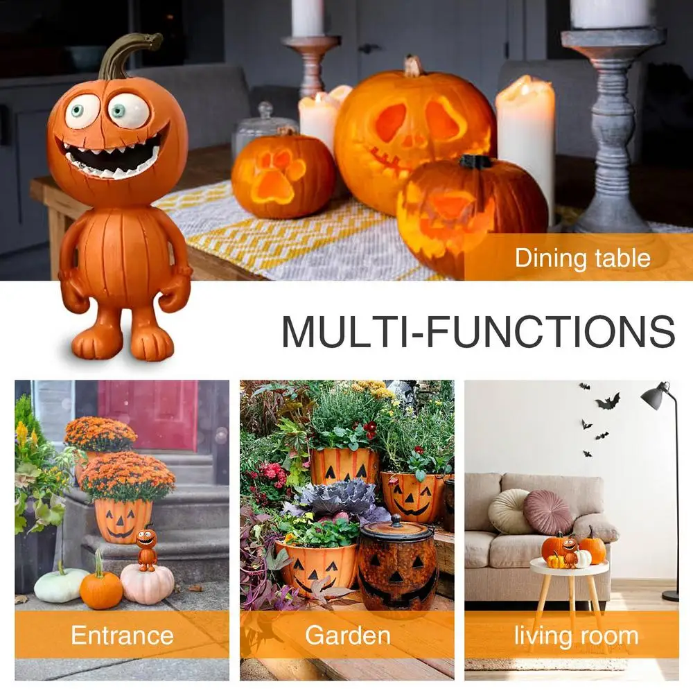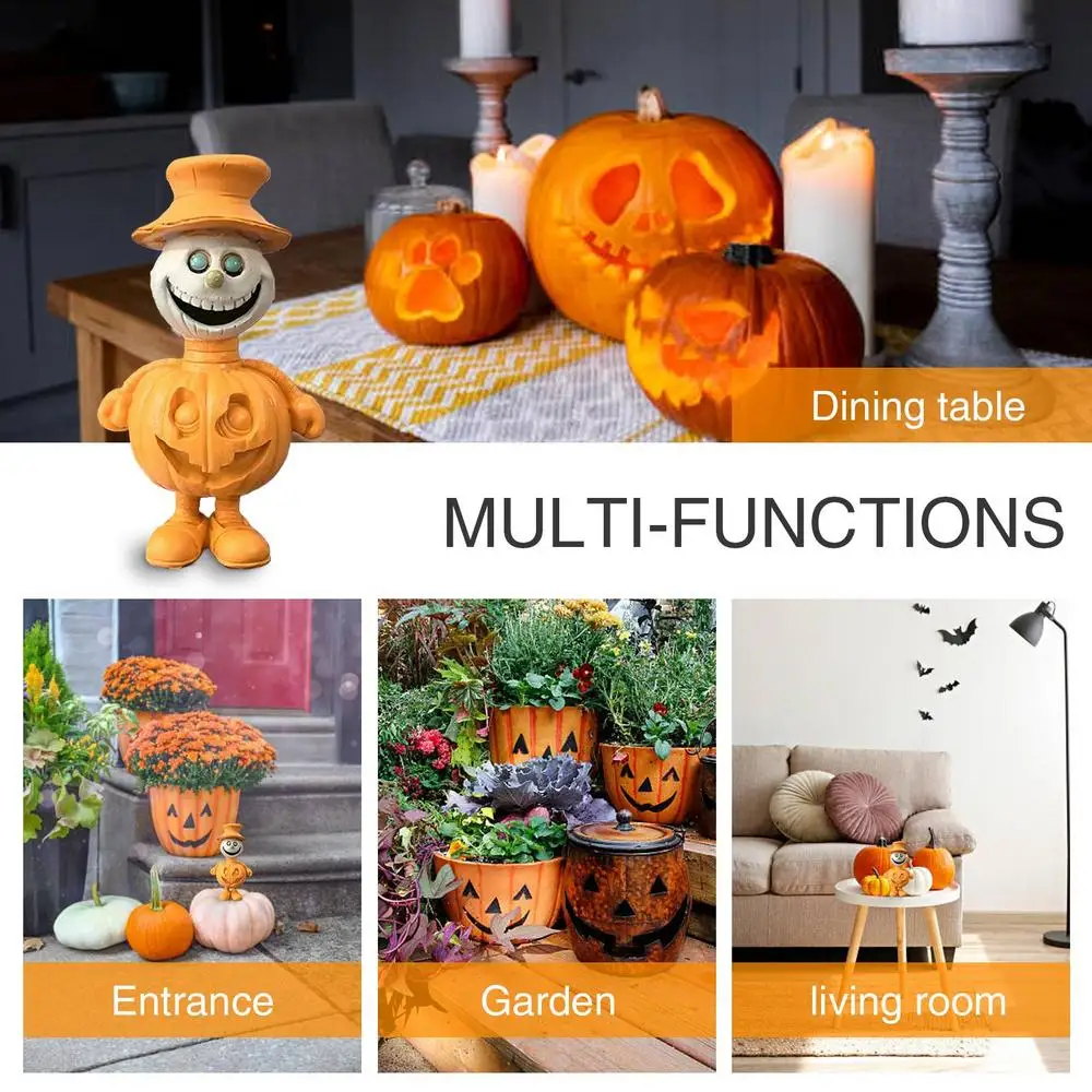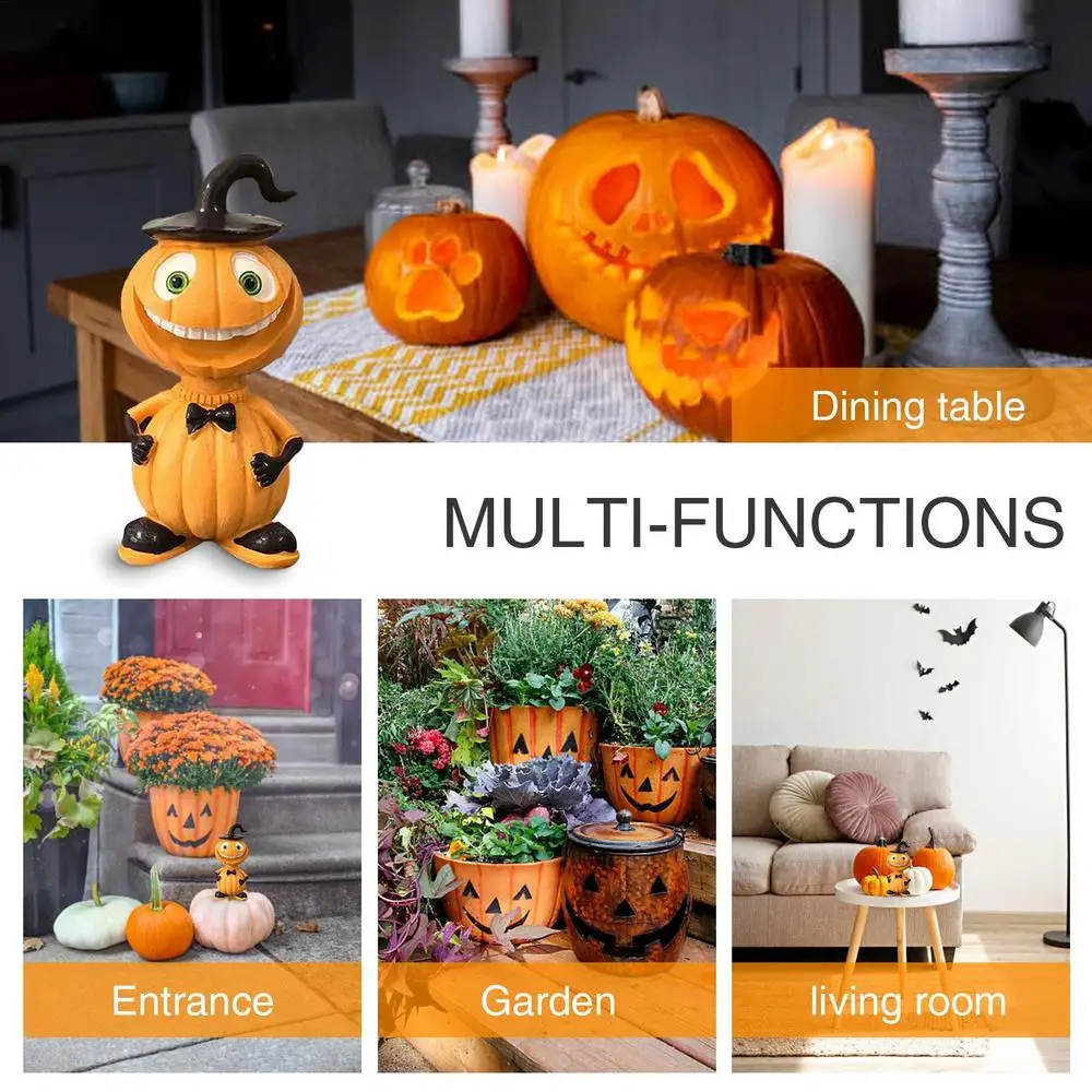 2.Outstanding Craftsmanship: With meticulous crafting from the grinning visage to intricate details, our Halloween figurines feature high-quality finish and texture, effortlessly attract attention, while mimicking the feel and texture of a real pumpkin.