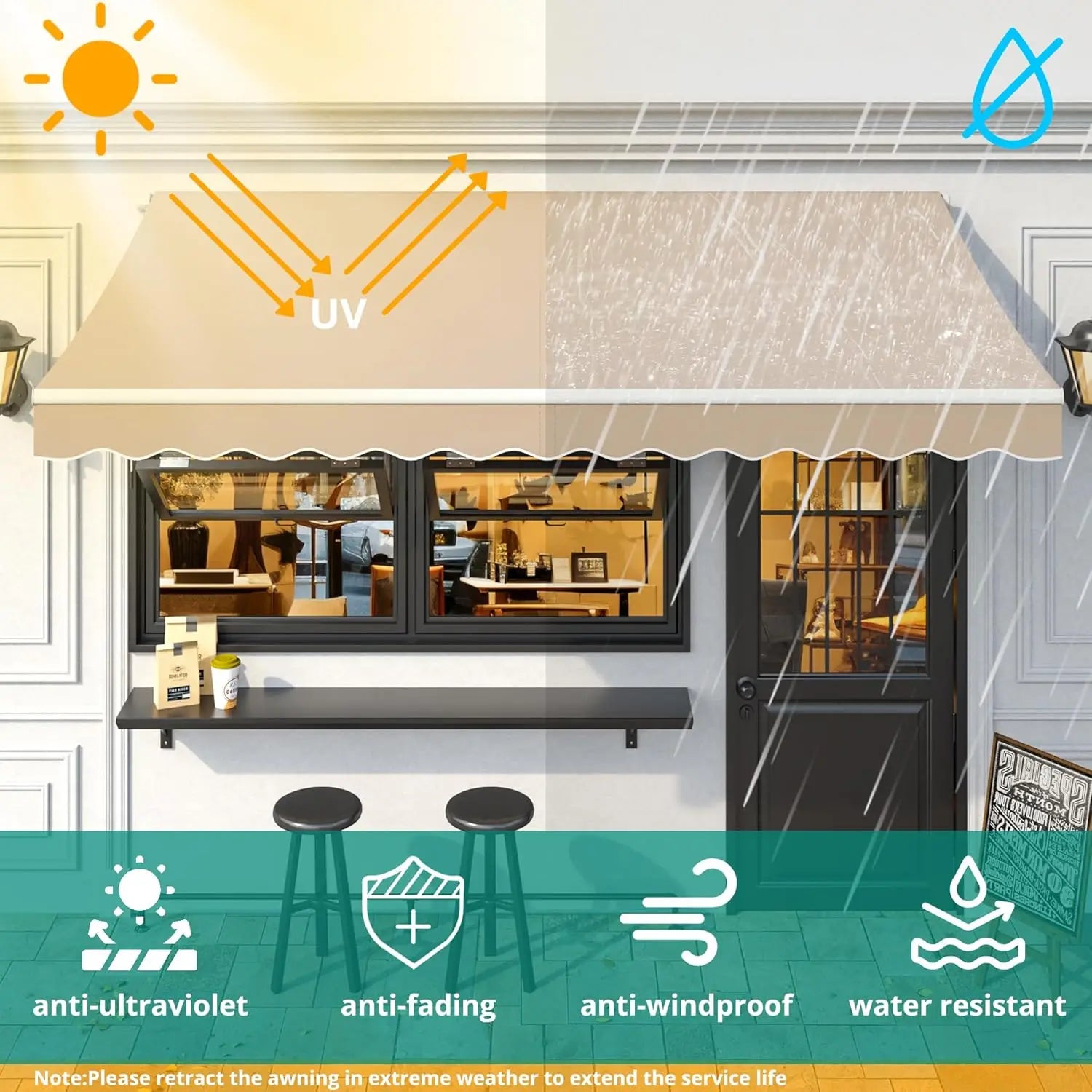 Retractable Awning 13 x 8 ft Sun Shade Shelter Cover,Outdoor Patio Awnings for Shop, Restaurant, Cafe, Courtyard,Balcony