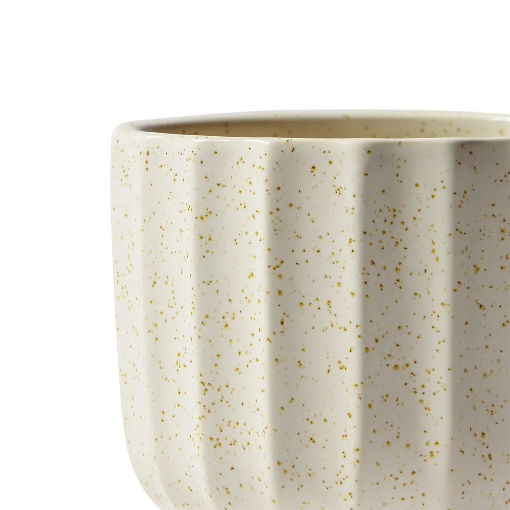 Introducing our versatile 4. 5”H Ceramic Pot, a charming addition to your indoor greenery. Crafted from durable ceramic in a soothing cream white hue, this pot boasts a soft smooth finish that adds a touch of elegance to any space. Featuring a unique vertical ribbed texture and delicate dotted speckles, it exudes understated sophistication while complementing various dr styles seamlessly. Whether displaying vibrant flowers, lush plants, or standing alone as a drative accent, this timeless piece elevates your home decor effortlessly. Rest assured, its sturdy and well-made construction ensures stability and prevents tilting. Enhance your living space with this stylish and functional ceramic pot that brings natural beauty indoors.