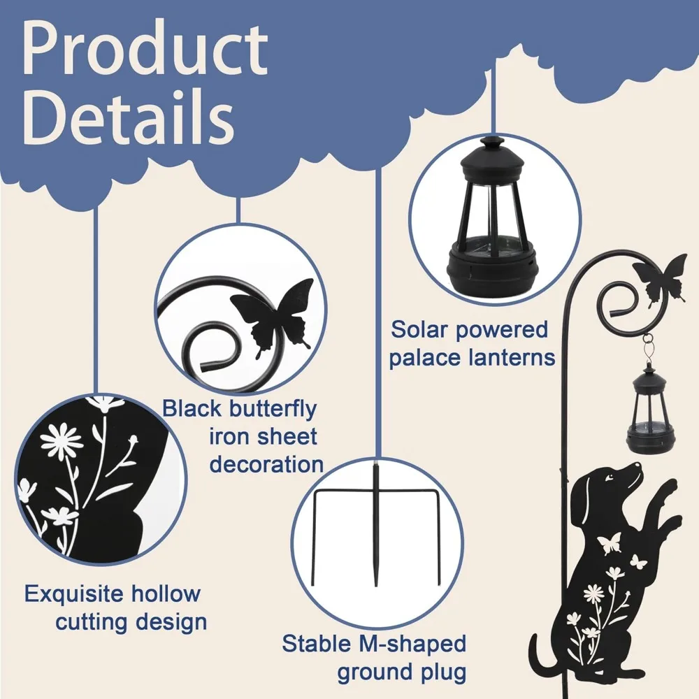 - 1. Adorable Solar-Powered Dog Lantern Brighten your outdoor space with this charming metal dog stake holding a solar lantern. Automatically illuminates at dusk and turns off at dawn—no wiring required. Perfect for walkways, gardens, or backyard decor.