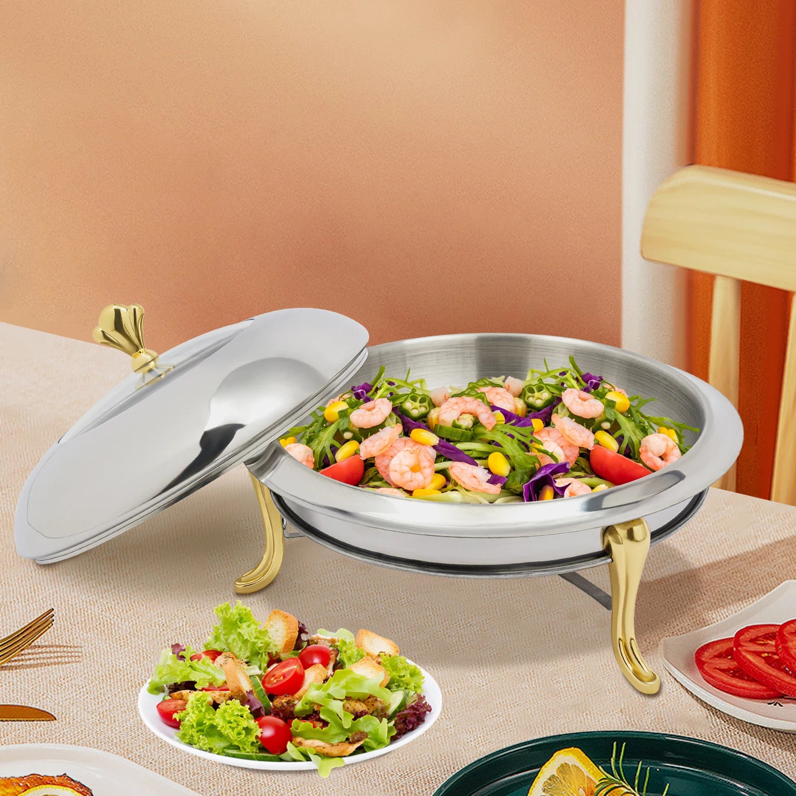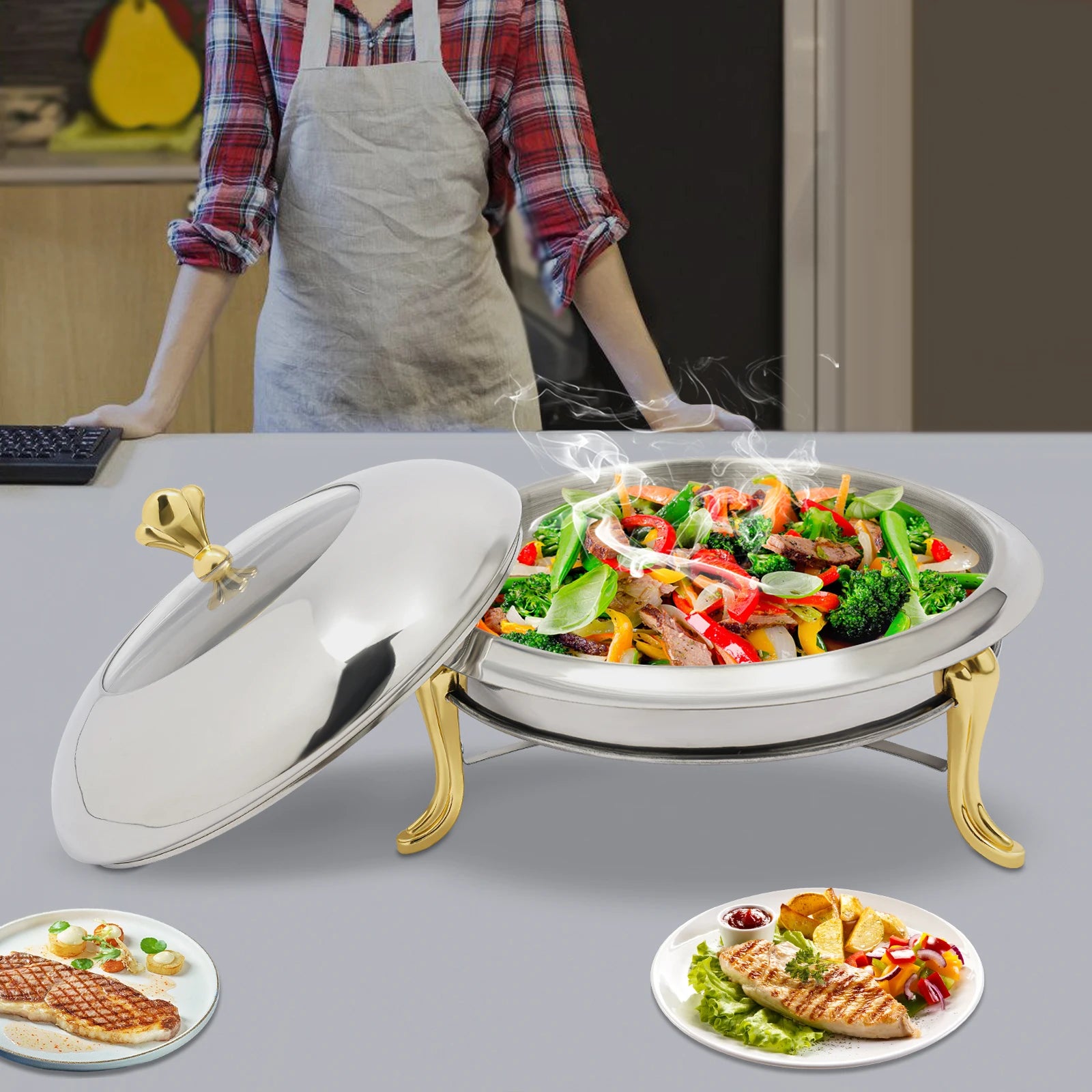 Stainless Steel Hot Pot Buffet Stove Round Without Ear, Dry Warmer Chafing Dish Kitchen Set with Glass Viewing Lid (Golden 24cm)