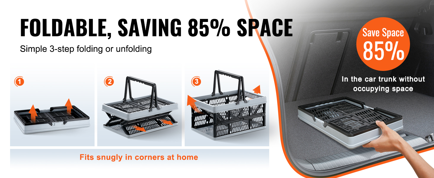 Fold and go in a flash! Our store basket flips open or collapses in just 10 seconds flat—no tools needed! Perfect for tossing in your car trunk or stashing away at home without hogging space.